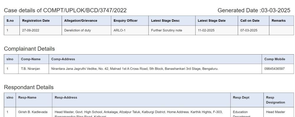 ಕಲಂ 25ರ ಪ್ರಕಾರ ವಿಚಾರಣೆ ನಡೆಸಿದ್ದ ವಿಚಾರಣಾಧಿಕಾರಿಗಳು 2024ರ ಡಿಸೆಂಬರ್ 31ರಂದು ಜಿಲ್ಲಾ ನೋಂದಣಾಧಿಕಾರಿಗಳಿಗೆ ವರದಿ ಸಲ್ಲಿಸಿದ್ದಾರೆ. ವಿಚಾರಣೆ ವರದಿಯಲ್ಲಿನ ಒಟ್ಟು 07 ವಿಚಾರಣಾಂಶಗಳಲ್ಲಿ 4 ಅಂಶಗಳು ಸಾಬೀತಾಗಿವೆ ಎಂದು ಉತ್ತರದಲ್ಲಿ ಮಾಹಿತಿ ಒದಗಿಸಿರುವುದು ಗೊತ್ತಾಗಿದೆ.