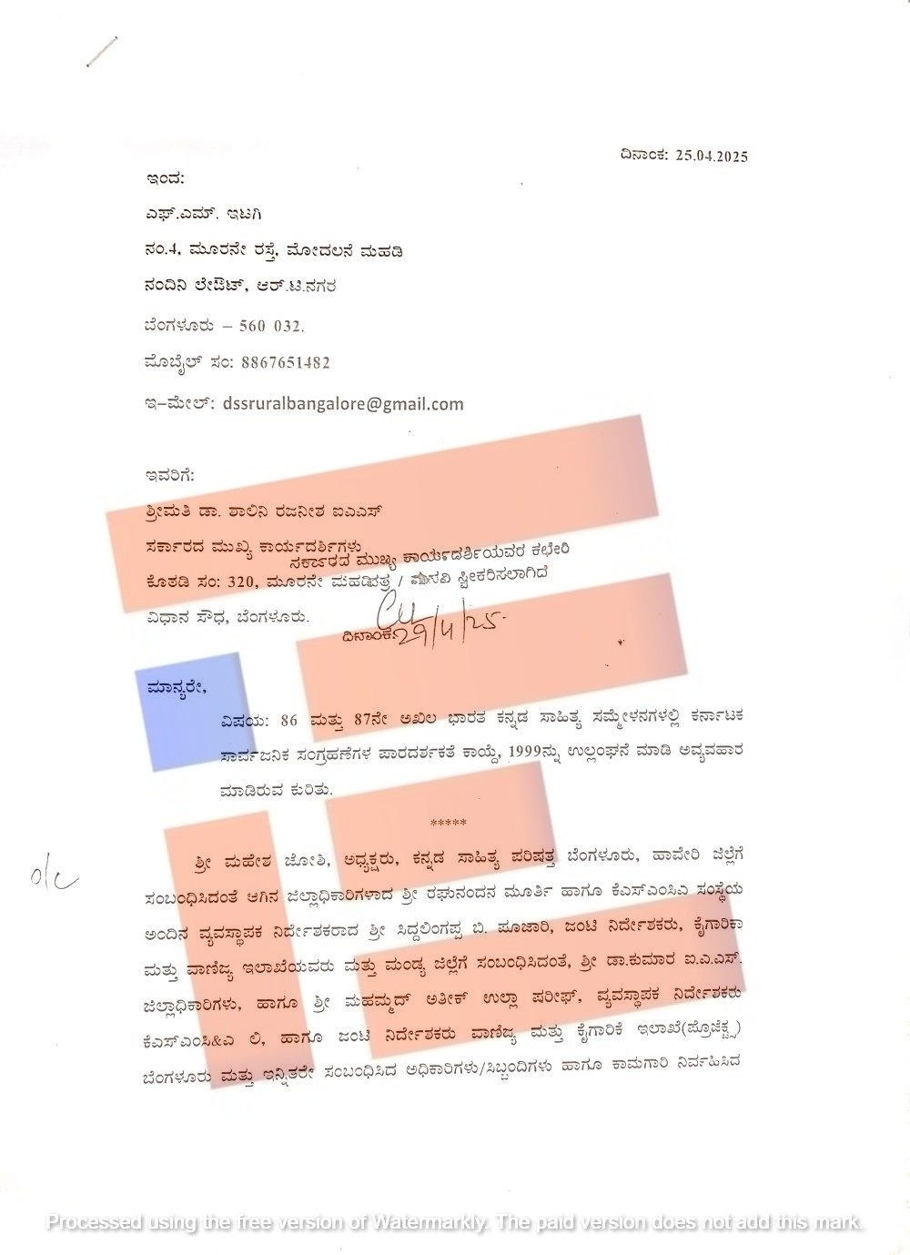 ಇಟಗಿ ಎಂಬುವರು ಕನ್ನಡ ಸಾಹಿತ್ಯ ಪರಿಷತ್‌ ಅಧ್ಯಕ್ಷ ಮಹೇಶ್‌ ಜೋಷಿ,  ಮಂಡ್ಯ ಜಿಲ್ಲಾಧಿಕಾರಿ, ಕೆಎಸ್‌ಎಂಸಿಎನ ವ್ಯವಸ್ಥಾಪಕ ನಿರ್ದೇಶಕ ಅತೀಕ್‌ ಉಲ್ಲಾ ಷರೀಫ್‌ ಮತ್ತಿತರ ವಿರುದ್ಧ  ಸಚಿವ ಎಂ ಬಿ ಪಾಟೀಲ್‌, ಶಿವರಾಜ್‌ ತಂಗಡಗಿ,  ರಾಜ್ಯ ಸರ್ಕಾರದ ಮುಖ್ಯ ಕಾರ್ಯದರ್ಶಿ ಶಾಲಿನಿ ರಜನೀಶ್‌, ಆರ್ಥಿಕ ಇಲಾಖೆಯ ಸರ್ಕಾರದ ಪ್ರಧಾನ ಕಾರ್ಯದರ್ಶಿ ರಿತೇಶ್‌ ಕುಮಾರ್‍‌ ಸಿಂಗ್‌ ಅವರಿಗೆ ದೂರು ನೀಡಿದ್ದಾರೆ.