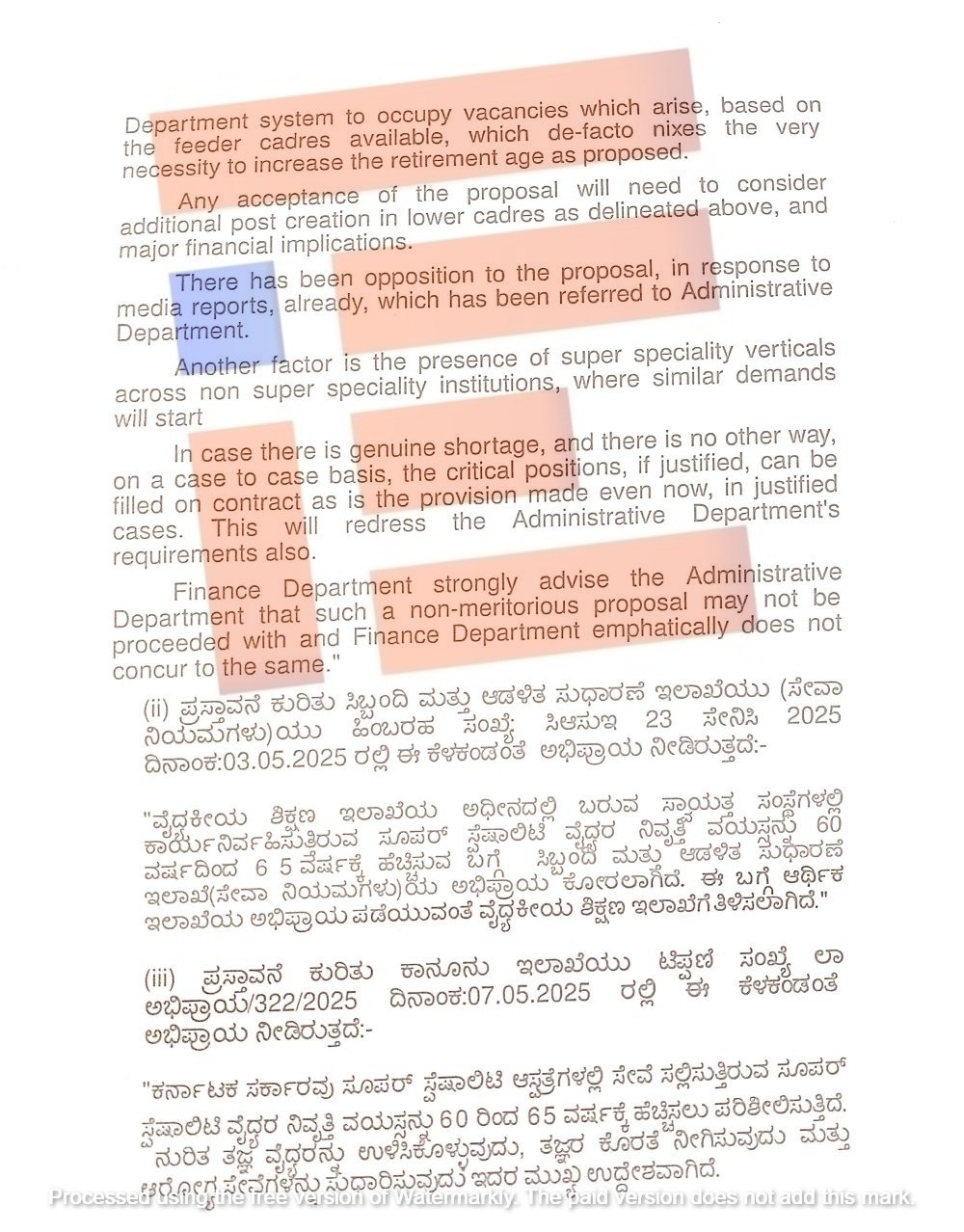 ವೈದ್ಯರ ನಿವೃತ್ತಿ ವಯಸ್ಸು ಹೆಚ್ಚಳಕ್ಕೆ ಸಂಬಂಧಿಸಿದಂತೆ ವೈದ್ಯಕೀಯ ಶಿಕ್ಷಣ ಇಲಾಖೆಯು ಸಚಿವ ಸಂಪುಟಕ್ಕೆ ಮಂಡಿಸಿರುವ ಗೌಪ್ಯ ಟಿಪ್ಪಣಿಯ (ಕಡತ ಸಂಖ್ಯೆ; ಎಂಇಡಿ 61 ಆರ್‍‌ಜಿಯು 2025)  ಪ್ರತಿಯು ‘ದಿ ಫೈಲ್‌’ಗೆ ಲಭ್ಯವಾಗಿದೆ.