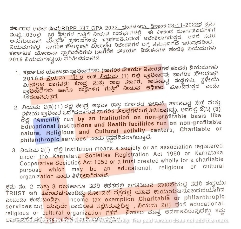 ‘ನಿಯಮ 2(ಸಿ)(1) ಮತ್ತು ನಿಯಮ 2(f) ರ ಪ್ರಕಾರ ಸದರಿ ಸಂಸ್ಥೆಯು ಟ್ರಸ್ಟ್‌ ಆಗಿ ನೋಂದಣಿಯಾಗಿದೆ. ನೋಂದಣಿ ಪತ್ರದಲ್ಲಿ ಯಾವ ಕಾಯ್ದೆಯಡಿ ನೋಂದಣಿಯಾಗಿದೆ ಎಂಬುದು ಕಂಡುಬಂದಿಲ್ಲ. ಆದಾಯ ತೆರಿಗೆ ವಿನಾಯ್ತಿ, ಚಾರಿಟಬಲ್‌ ಟ್ರಸ್ಟ್‌ ಅಥವಾ ಪರೋಪಕಾರಿ ಸೇವೆಗಳ ಬಗ್ಗೆ ಯಾವುದೇ ದಾಖಲಾತಿ ಸಲ್ಲಿಸಿಲ್ಲ,’ ಎಂದು ಟಿಪ್ಪಣಿ ಹಾಳೆಯಲ್ಲಿ ಪ್ರಸ್ತಾವಿಸಿರುವುದು ಗೊತ್ತಾಗಿದೆ.