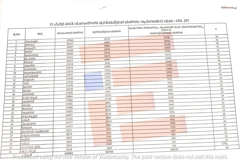 ಮುಖ್ಯಮಂತ್ರಿ ಸಿದ್ದರಾಮಯ್ಯ ಅವರ ಅಧ್ಯಕ್ಷತೆಯಲ್ಲಿ ವಿಧಾನಸೌಧದಲ್ಲಿ 2025ರ ಮೇ 30, 31 ರಂದು ನಡೆದಿದ್ದ ಜಿಲ್ಲಾಧಿಕಾರಿಗಳು ಮತ್ತು ಜಿಲ್ಲಾ ಪಂಚಾಯ್ತಿಗಳ ಮುಖ್ಯ ಕಾರ್ಯನಿರ್ವಾಹಕ ಅಧಿಕಾರಿಗಳ ಸಮ್ಮೇಳನಕ್ಕೆ ವಸತಿ ಇಲಾಖೆಯು ಈ ಕುರಿತಾದ ಸಮಗ್ರ ವಿವರ, ಮಾಹಿತಿಗಳನ್ನು ನೀಡಿತ್ತು. ಈ ವಿವರಗಳು ‘ದಿ ಫೈಲ್’ಗೆ ಲಭ್ಯವಾಗಿವೆ.