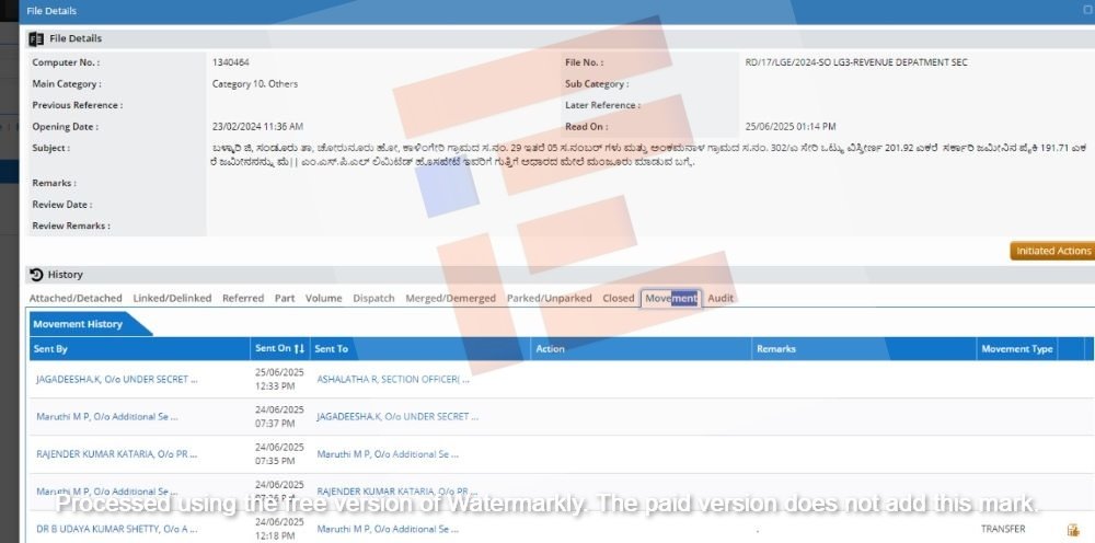 191.73 ಎಕರೆ ವಿಸ್ತೀರ್ಣದ ಸರ್ಕಾರಿ ಜಮೀನು ಮಂಜೂರು ಮಾಡುವ ಸಂಬಂಧದ ಕಡತವು ಕಂದಾಯ ಇಲಾಖೆಯಲ್ಲಿ ಬಿರುಸಿನ ವೇಗದಲ್ಲಿ ಚಲಿಸುತ್ತಿದೆ.