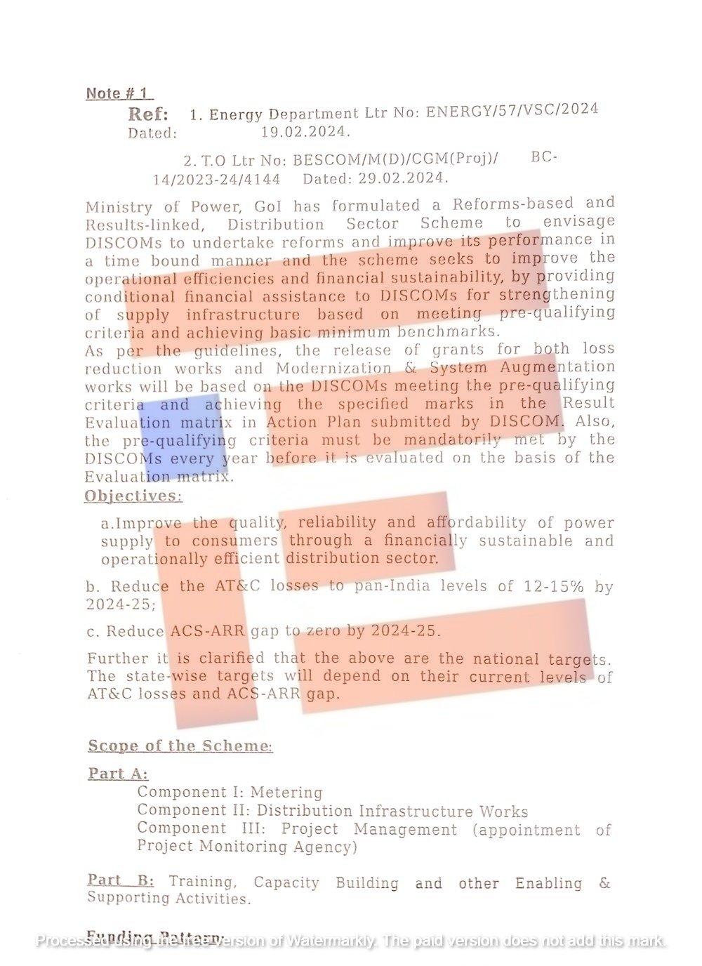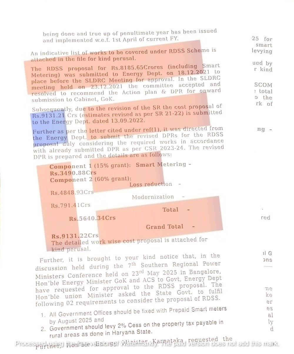 ಈ ಕುರಿತು ಇಂಧನ ಇಲಾಖೆಯು 2024ರ ಫೆ.19ರಂದು ಬರೆದಿದ್ದ ಪತ್ರದ ಪ್ರಕಾರ ಈಗಾಗಲೇ ಸಲ್ಲಿಸಲಾದ ಡಿಪಿಆರ್ಗೆ ಅನುಗುಣವಾಗಿ ಅಗತ್ಯವಿರುವ ಕೆಲಸಗಳನ್ನು ಪರಿಗಣಿಸಬೇಕು. ಅರ್ಡಿಎಸ್ಎಸ್ ಪ್ರಸ್ತಾವನೆಗಾಗಿ ಪರಿಷ್ಕೃತ ಡಿಪಿಆರ್ಗಳನ್ನು ಸಲ್ಲಿಸಲು ನಿರ್ದೇಶಿಸಿತ್ತು.