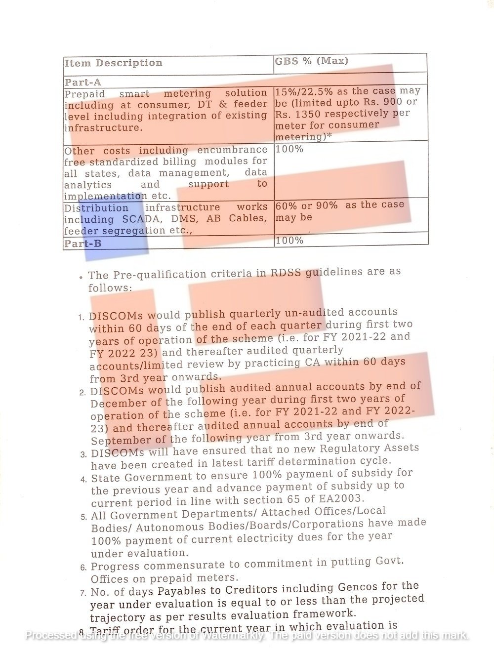 ಸ್ಮಾರ್ಟ್ ಮೀಟರಿಂಗ್ಗೆ ಘಟಕ 1 ರಂತೆ ಶೇ.15ರಷ್ಟು ಅನುದಾನ 6436.00 ಕೋಟಿ ರು., ಘಟಕ 2ರ ಪ್ರಕಾರ ಶೇ. 60ರಷ್ಟು ಅನುದಾನ ಪಡೆಯುವುದು. ನಷ್ಟ ಕಡಿತ ರೂ. 4058.93 ಕೋಟಿ ರು ಆಗಲಿದ್ದರೇ, ಆಧುನೀಕರಣಕ್ಕಾಗಿ 1,091.41 ಕೋಟಿ ರು ಸೇರಿದಂತೆ ಒಟ್ಟು 5,150.34 ಕೋರಿ ರು ಆಗಲಿದೆ. ಒಟ್ಟಾರೆ 11,586.34 ಕೋಟಿ ರು ವೆಚ್ಚವಾಗಲಿದೆ.