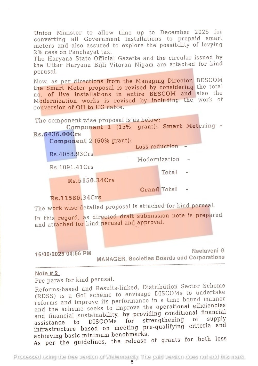 ಈ ಕುರಿತು ಇಂಧನ ಇಲಾಖೆಯಲ್ಲಿ ಅಧಿಕಾರಿಗಳು ಡಿಸ್ಕಾಂಗಳ ಜೊತೆ ಸಮಾಲೋಚನೆ ನಡೆಸಿದ್ದಾರೆ. ಇದಕ್ಕೆ ಸಂಬಂಧಿಸಿದಂತೆ ‘ದಿ ಫೈಲ್’ಗೆ ಕಡತದಲ್ಲಿರುವ ಟಿಪ್ಪಣಿ ಹಾಳೆಗಳು ಲಭ್ಯವಾಗಿವೆ.