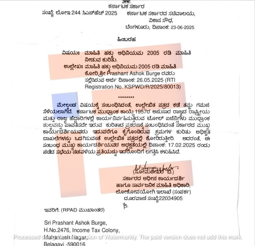 ಈ ಸಂಬಂಧ ಬೆಳಗಾವಿಯ ಸಾಮಾಜಿಕ ಕಾರ್ಯಕರ್ತ ಪ್ರಶಾಂತ್ ಅಶೋಕ್ ಬುರ್ಗೆ ಅವರು ಆರ್ಟಿಐ ಅಡಿಯಲ್ಲಿ ಪಡೆದಿರುವ ಮಾಹಿತಿಯಲ್ಲಿ ಮುದ್ರಾಂಕ ಶುಲ್ಕ ಪಾವತಿಯಾಗದಿರುವ ಸಂಗತಿಯು ಬಯಲಾಗಿದೆ.