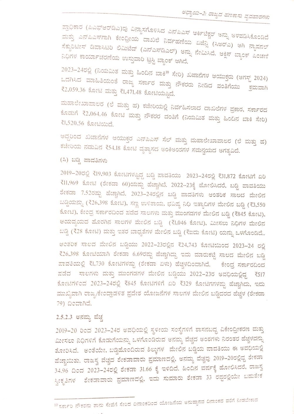 2025ರ ಆಗಸ್ಟ್ನಲ್ಲಿ ನಡೆದ ಕರ್ನಾಟಕ ವಿಧಾನಮಂಡಲ ಅಧಿವೇಶನದಲ್ಲಿ ಮಂಡನೆಯಾಗಿರುವ ಸಿಎಜಿ ವರದಿಯು ಬಡ್ಡಿ ಪಾವತಿಗಳ ಮೇಲೆ ವಿಶ್ಲೇಷಣೆ ನಡೆಸಿದೆ.