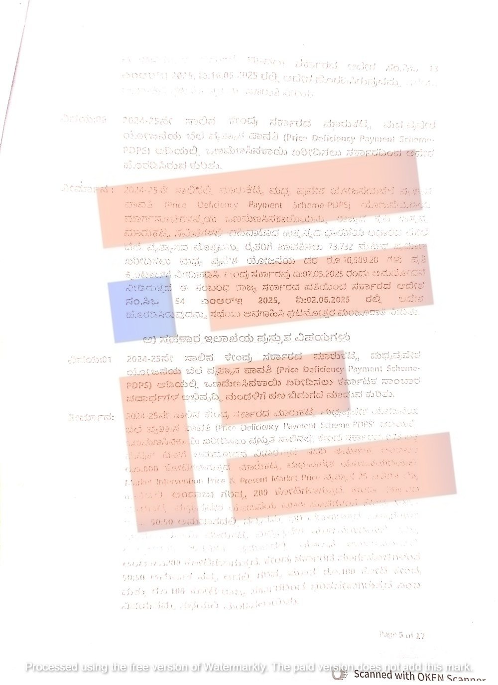 ಕೇಂದ್ರ ಸರ್ಕಾರದಿಂದ ಬೆಂಬಲ ಬೆಲೆ ಯೋಜನೆಯಡಿ ಹಣ ಬಿಡುಗಡೆಯಾದ ಕೂಡಲೇ ಈ ಮೊತ್ತವನ್ನು ಆವರ್ತ ನಿಧಿಗೆ ಮರುಪಾವತಿಸುವ ಷರತ್ತಿಗೊಳಪಟ್ಟು ಕರ್ನಾಟಕ ಆಹಾರ ಮತ್ತು ನಾಗರೀಕ ಸರಬರಾಜು ನಿಗಮಕ್ಕೆ ಕರ್ನಾಟಕ ರಾಜ್ಯ ಕೃಷಿ ಮಾರಾಟ ಮಂಡಳಿಯಿಂದ ಬಿಡುಗಡೆ ಮಾಡಲು ಈಗಾಗಲೇ ಹೊರಡಿಸಿರುವ ಆದೇಶಕ್ಕೆ ಉಪ ಸಮಿತಿಯು ಮಂಜೂರು ಮಾಡಿತ್ತು.