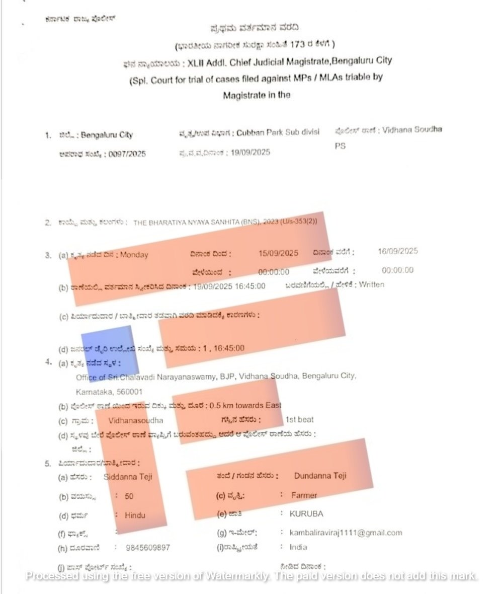 ಈ ಎಫ್‌ಐಆರ್‍‌ ಪ್ರತಿ ‘ದಿ ಫೈಲ್‌’ಗೆ ಲಭ್ಯವಾಗಿದೆ.