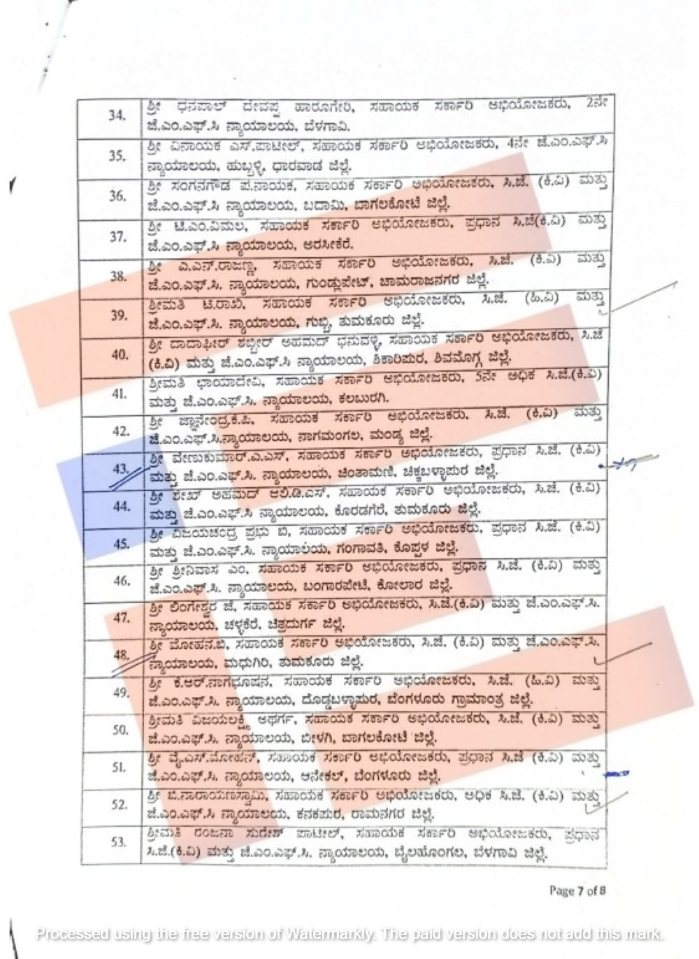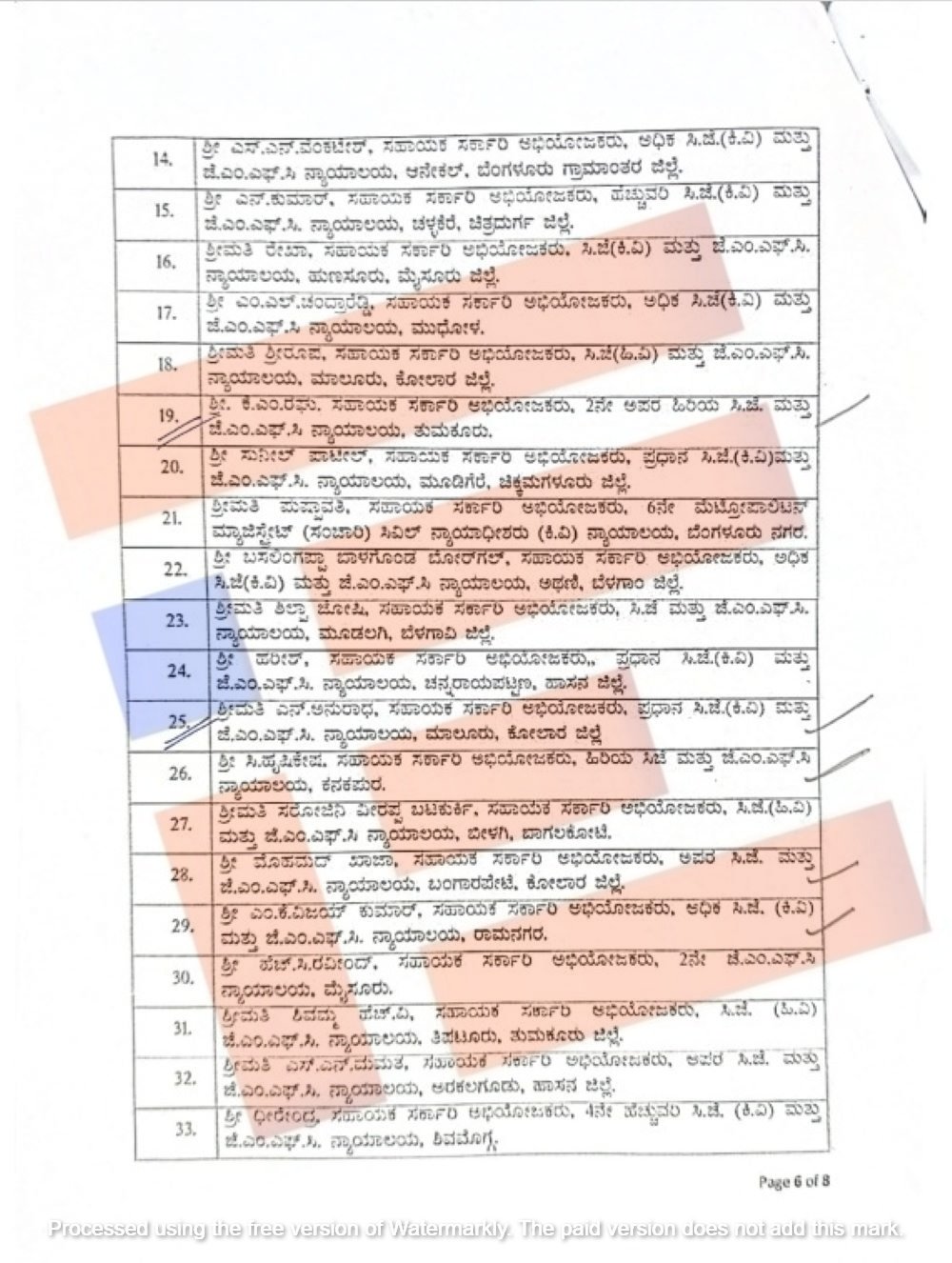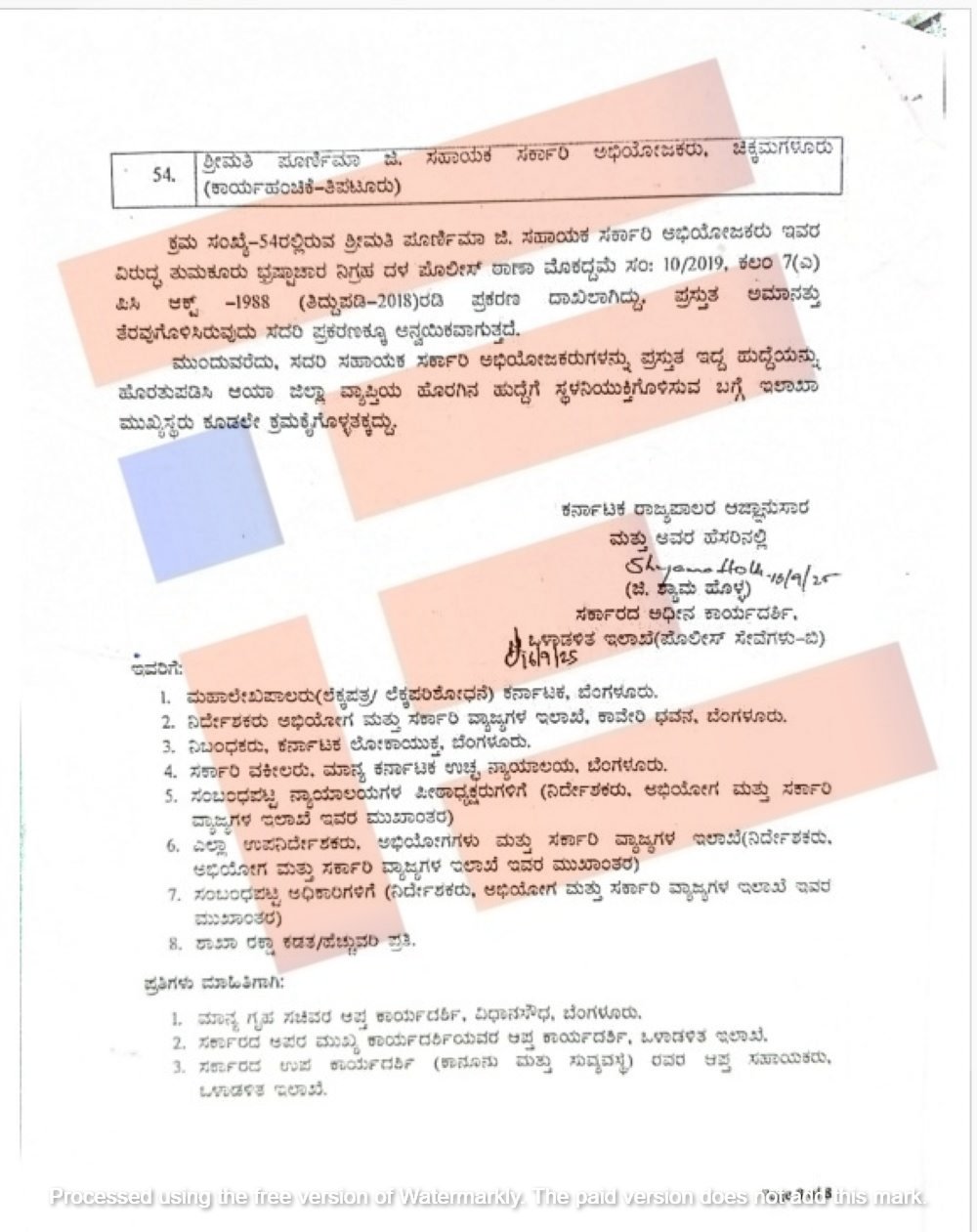 ಅಮಾನತಿಲ್ಲಿರುವ ಸಹಾಯಕ ಸರ್ಕಾರಿ ಅಭಿಯೋಜಕರುಗಳನ್ನುಕರ್ನಾಟಕ ಲೋಕಾಯುಕ್ತ ಶಿಫಾರಸ್ಸಿನ ಅನ್ವಯ ಮತ್ತು ಕರ್ನಾಟಕ ನಾಗರಿಕ ಸೇವಾ ನಿಯಮಗಳೂ ನಿಯಮ 8 (viii) ಅನ್ವಯ 6 ಮಂದಿ ಸಹಾಯಕ ಸರ್ಕಾರಿ ಅಭಿಯೋಜಕರ ಸೇವೆಯಿಂದ ತೆಗೆದುಹಾಕಿ ವಜಾಗೊಳಿಸಿ ಆದೇಶಿಸಿತ್ತು.