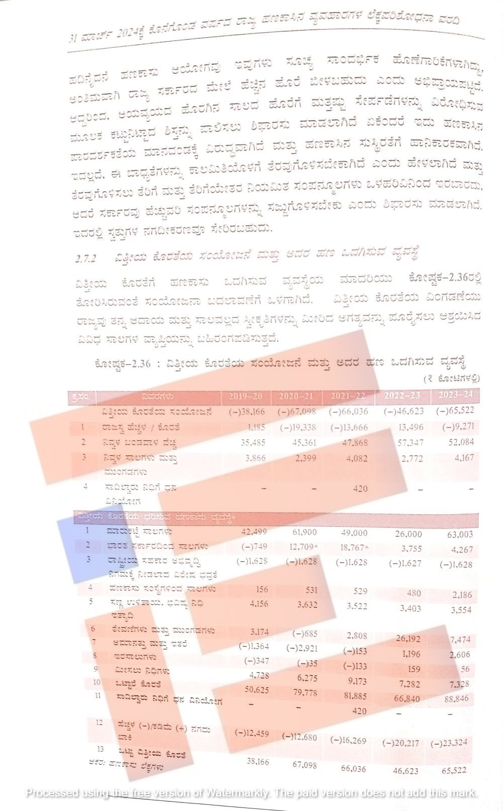 ರಾಜ್ಯವು 2004-25ರಿಂದ ರಾಜಸ್ವ ಹೆಚ್ಚಳವನ್ನು ಸಾಧಿಸಿತ್ತು. ಇದರೊಂದಿಗೆ ಮಾರುಕಟ್ಟೆ ಸಾಲಗಳು, ಭಾರತ ಸರ್ಕಾರದ ಸಾಲಗಳನ್ನು ಬಂಡವಾಳ ವೆಚ್ಚಕ್ಕೆ ಒದಗಿಸಲು ಬಳಕೆ ಮಾಡಿಕೊಳ್ಳಲಾಗಿತ್ತು. 2020-21 ಮತ್ತು 2021-22ರಲ್ಲಿ ರಾಜ್ಯವು ಕೋವಿಡ್ 19ರ ಕಾರಣದಿಂದಾಗಿ ರಾಜಸ್ವ ವೆಚ್ಚ ಕೊರತೆ ಎದುರಿಸಿತ್ತು. ಹೀಗಾಗಿ ಸಾಲದ ಮೊತ್ತಗಳನ್ನು ರಾಜಸ್ವ ವೆಚ್ಚವನ್ನು ಭರಿಸಲು ಉಪಯೋಗಿಸಿತ್ತು. 2022-23ರಲ್ಲಿ ರಾಜಸ್ವ ಹೆಚ್ಚಳವನ್ನು ಸಾಧಿಸಿತ್ತು. ಆದರಡೆ 2023-24ರಲ್ಲಿ ರಾಜ್ಯವು 9,271 ಕೋಟಿಗಳ ರಾಜಸ್ವ ಕೊರತೆ ಎದುರಿಸಿತು. 2023-24ರ ವಿತ್ತೀಯ ಕೊರತೆಯನ್ನು ಸರಿದೂಗಿಸಲು 65,522 ಕೋಟಿಯಷ್ಟು ಸಾಲ ಪಡೆಯಿತು ಎಂದು ಸಿಎಜಿ ವರದಿಯು ವಿವರಿಸಿದೆ.