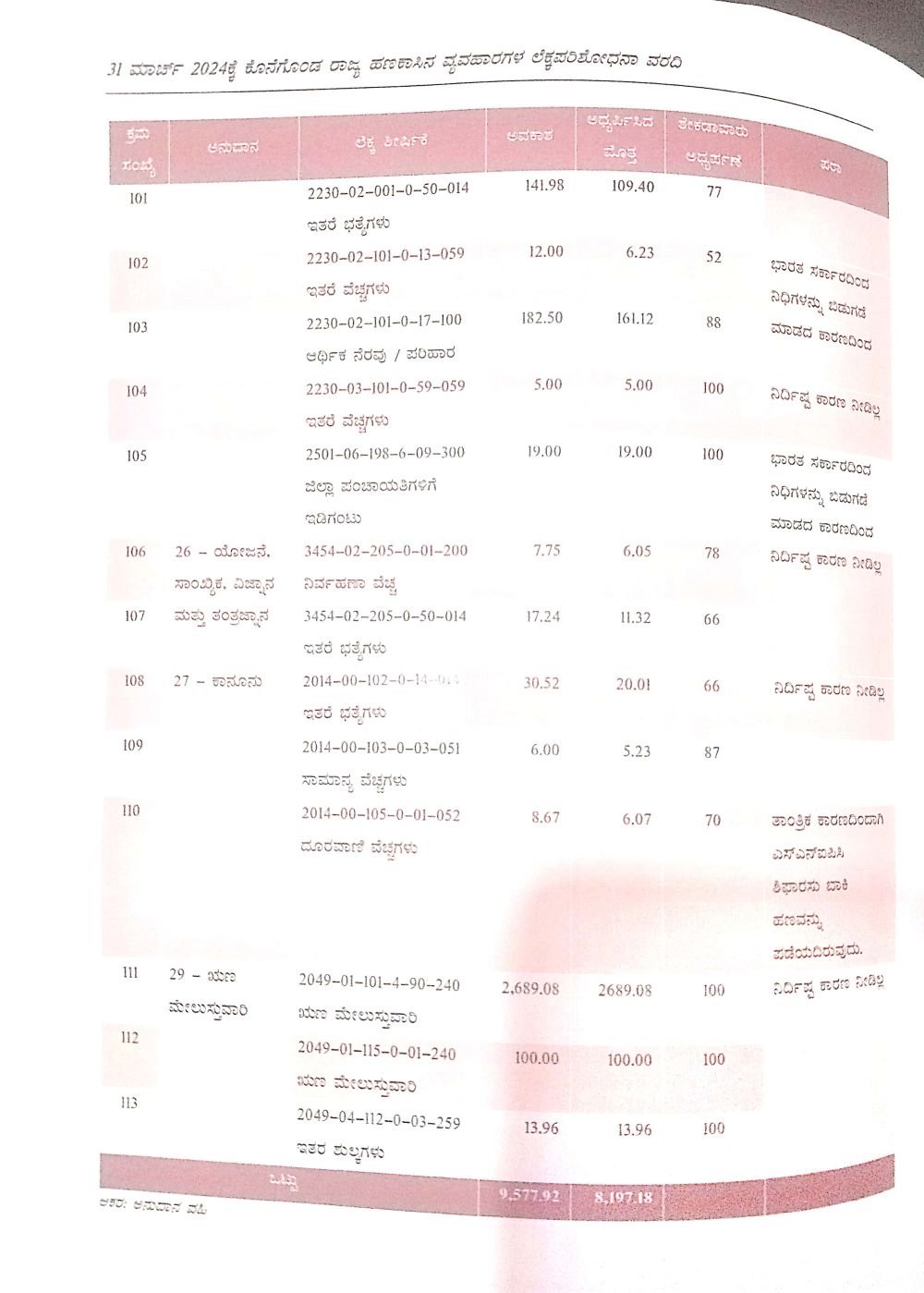 9 ಅನುದಾನ,ವಿನಿಯೋಗಗಳ 11 ಪ್ರಕರಣಗಳಲ್ಲಿ 839.18 ಕೋಟಿಯನ್ನು ಸರ್ಕಾರಕ್ಕೆ ವಾಪಸ್ ಮಾಡಿತ್ತು.