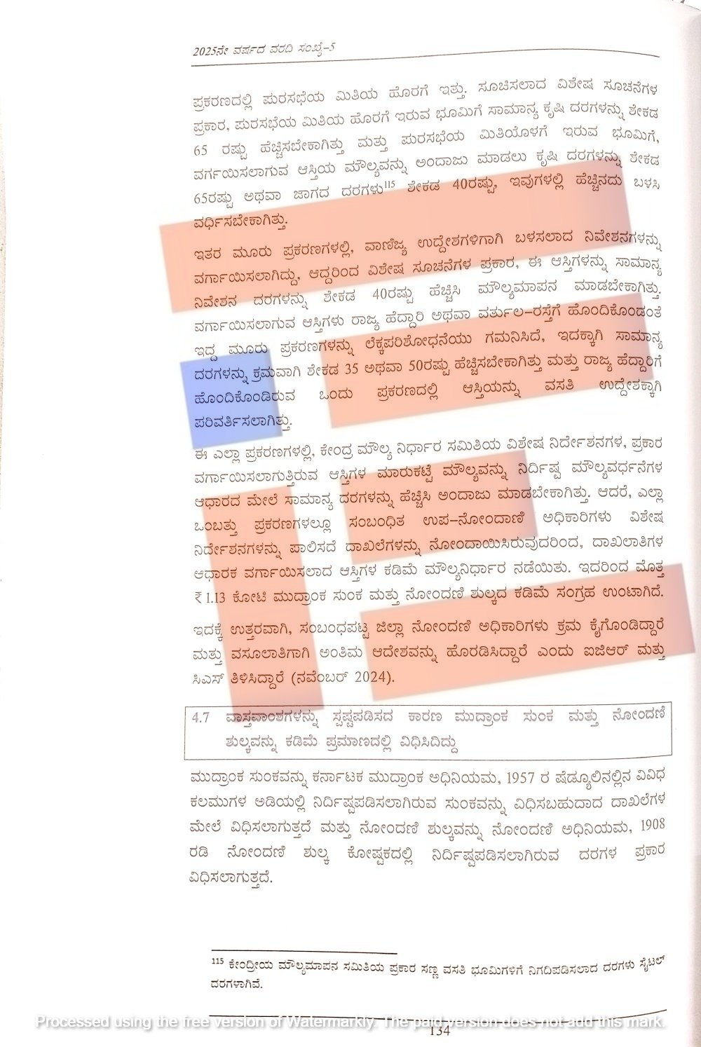 2025ರ ಆಗಸ್ಟ್ನಲ್ಲಿ ನಡೆದ ಕರ್ನಾಟಕ ವಿಧಾನಮಂಡಲದಲ್ಲಿ ನಡೆದ ಅಧಿವೇಶನದಲ್ಲಿ ಮಂಡನೆಯಾಗಿರುವ ಸಿಎಜಿ ವರದಿಯು ನೋಂದಣಿ ಮುದ್ರಾಂಕ ಇಲಾಖೆಯಲ್ಲಿನ ಅಧಿಕಾರಿಗಳ ಬೇಜವಾಬ್ದಾರಿಯಿಂದಾಗಿ ಸರ್ಕಾರದ ಬೊಕ್ಕಸಕ್ಕೆ ಆಗಿರುವ ನಷ್ಟ, ತೆರಿಗೆ ಸೋರಿಕೆ ಪ್ರಕರಣಗಳನ್ನು ವಿವರಿಸಿದೆ.