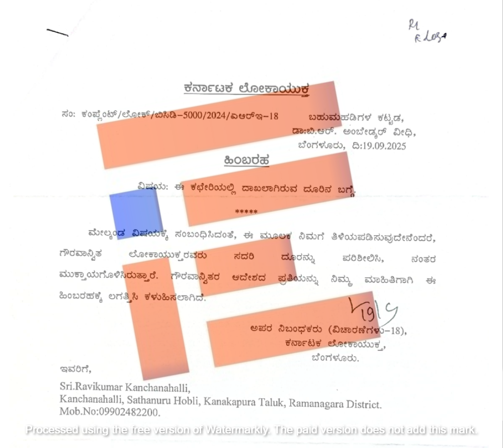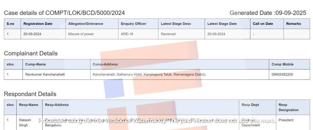 ಸಾಮಾಜಿಕ ಕಾರ್ಯಕರ್ತ ಕಂಚನಹಳ್ಳಿ ರವಿಕುಮಾರ್‍‌ ಎಂಬುವರು  ಲೋಕಾಯುಕ್ತರಿಗೆ 2024ರ ಸೆ 20ರಂದು ಸಲ್ಲಿಸಿದ್ದ ದೂರರ್ಜಿಯ ಸ್ಥಿತಿಗತಿಯ ಮೇಲೆ ದಿ ಫೈಲ್‌,  ಲೋಕಾಯುಕ್ತ ವೆಬ್‌ಸೈಟ್‌ ಮೇಲೆ 2025ರ ಸೆ.9ರಂದೇ  ಕಣ್ಣಾಡಿಸಿತ್ತು. ಆ ವೇಳೆಯಲ್ಲಿ  ಈ ದೂರರ್ಜಿಯು   ಅಪರ ನಿಬಂಧಕರ (18) ಕಚೇರಿಯಲ್ಲೇ ಇತ್ತು.