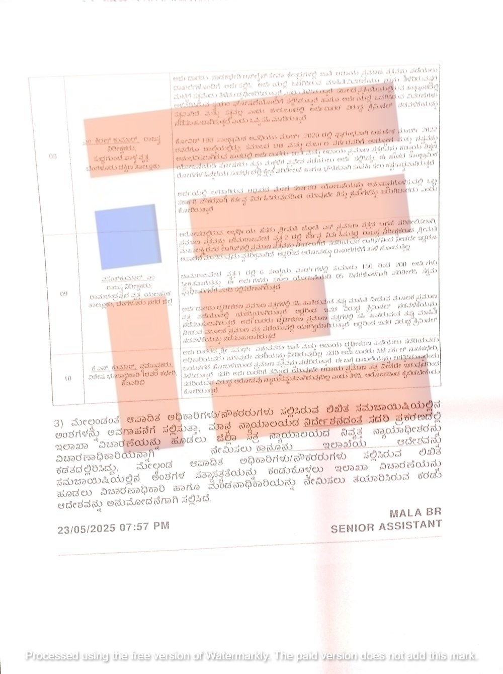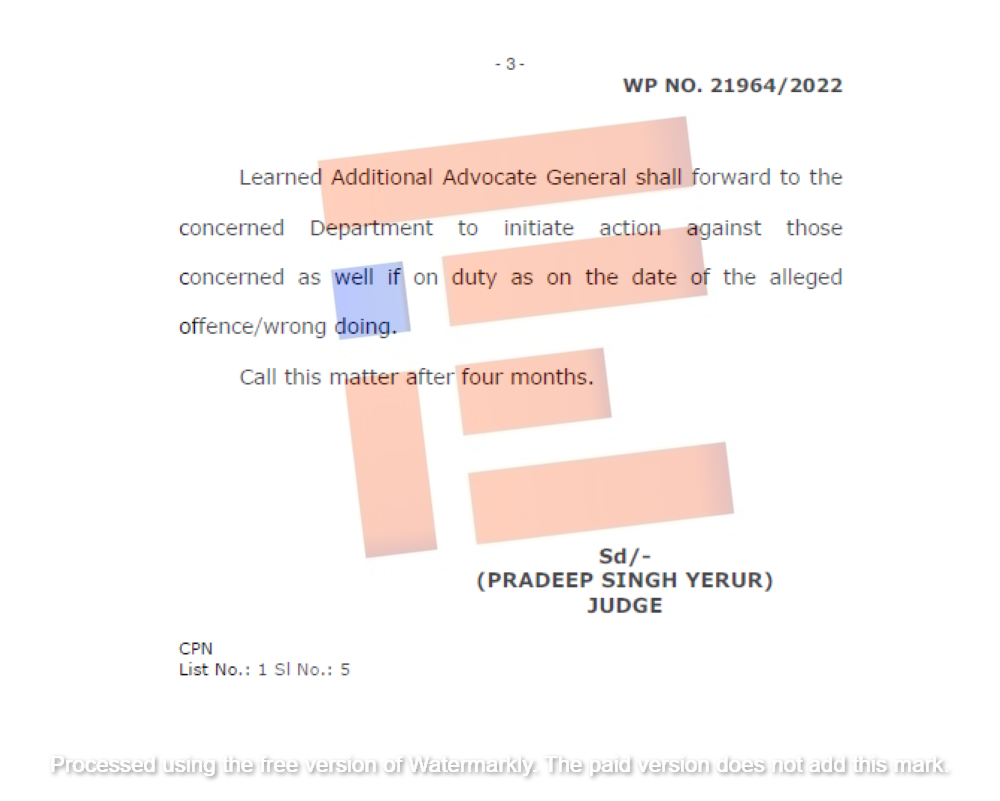 ಮೇಲಿನ ಟಿಪ್ಪಣಿಯನ್ನು ಪರಿಶೀಲಿಸಲಾಗಿದೆ. ಇದು ಗಂಭೀರ ವಿಷಯ. ಸುಳ್ಳು ಆದಾಯ ಪ್ರಮಾಣಪತ್ರದ ಆಧಾರದ ಮೇಲೆ, ಅರ್ಹ ವಿದ್ಯಾರ್ಥಿಗಳು ಆರ್ಟಿಇ ಕಾಯ್ದೆಯ ಕೋಟಾದಡಿಯಲ್ಲಿ ಸಂಸ್ಥೆಗಳಿಗೆ ಪ್ರವೇಶ ಪಡೆಯಲಿಲ್ಲ. ಈ ಅಧಿಕಾರಿಗಳು ತಮ್ಮ ಕರ್ತವ್ಯವನ್ನು ಸರಿಯಾದ ಶ್ರದ್ಧೆಯಿಂದ ನಿರ್ವಹಿಸಲಿಲ್ಲ ಮತ್ತು ಇದು ಸಂಪೂರ್ಣವಾಗಿ ನಿರ್ಲಕ್ಷ್ಯ, ನಿರ್ದಯತೆ ಮತ್ತು ಕರ್ತವ್ಯ ಲೋಪ ಎಸಗಿದ್ದಾರೆ. ಕಂದಾಯ ಇಲಾಖೆಯ ಅಧಿಕಾರಿಗಳ ಈ ಕಾನೂನುಬಾಹಿರ ಕೃತ್ಯವನ್ನು ಹೈಕೋರ್ಟ್ ಗಂಭೀರವಾಗಿ ಪರಿಗಣಿಸಿದೆ. ಅವರ ವಿರುದ್ಧ ಶಿಸ್ತು ಕ್ರಮ ಮತ್ತು ದಂಡ ವಿಧಿಸಲು ನಿರ್ದೇಶನ ನೀಡಿದೆ.