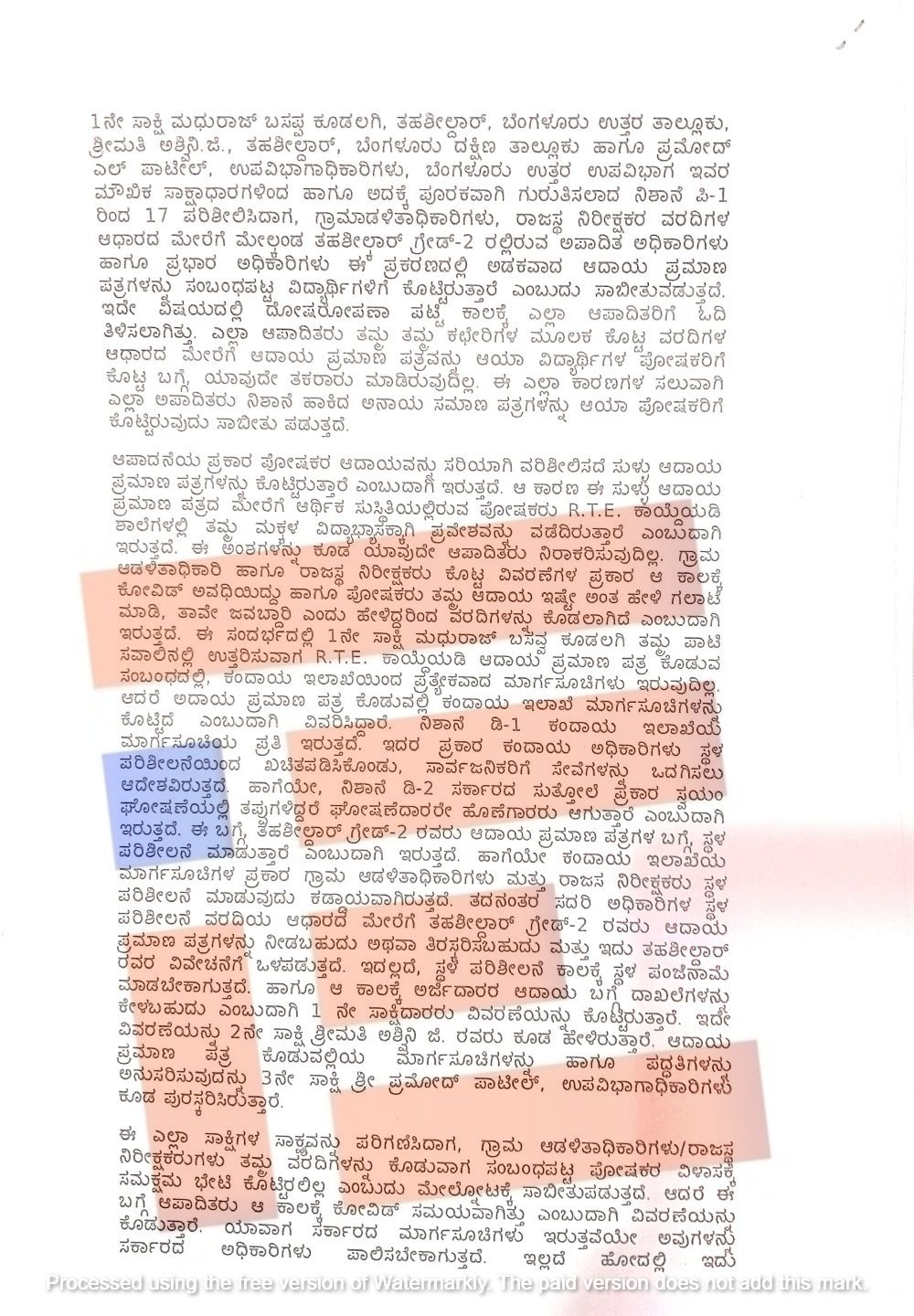 ರಾಜಸ್ವ ನಿರೀಕ್ಷಕರು ಈ ಪೋಷಕರಿಗೆ ನೀಡಿದ್ದ ಆದಾಯ ಪ್ರಮಾಣ ಪತ್ರಗಳು ಮತ್ತು ರಾಜಸ್ವ ನಿರೀಕ್ಷಕರು ನಮೂದಿಸಿರುವ ವರದಿಯಲ್ಲಿನ ಅಂಶಗಳು ನೈಜತೆಯಿಂದ ಕೂಡಿವೆಯೇ ಅಥವಾ ಇಲ್ಲವೇ, ನಮೂದಿಸಿರುವ ಅಭ್ಯರ್ಥಿಗಳ ಆದಾಯವು ಕ್ರಮಬದ್ಧವಾಗಿದೆಯೋ ಎಂಬುದನ್ನು ತಹಶೀಲ್ದಾರ್ಗಳು (ಗ್ರೇಡ್ 2) ಪರಿಶೀಲಿಸಿಲ್ಲ.