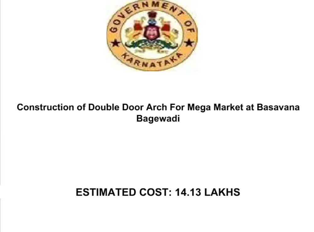 ಮೆಗಾ ಮಾರುಕಟ್ಟೆಯ ಮಹಾದ್ವಾರಗಳನ್ನು ನಿರ್ಮಿಸಲು ಬಸವನ ಬಾಗೇವಾಡಿ ಪುರಸಭೆಯು 14.13 ಲಕ್ಷ ರು ಮೊತ್ತದ ಅಂದಾಜು ವೆಚ್ಚವನ್ನು ಸಿದ್ಧಪಡಿಸಿತ್ತು.