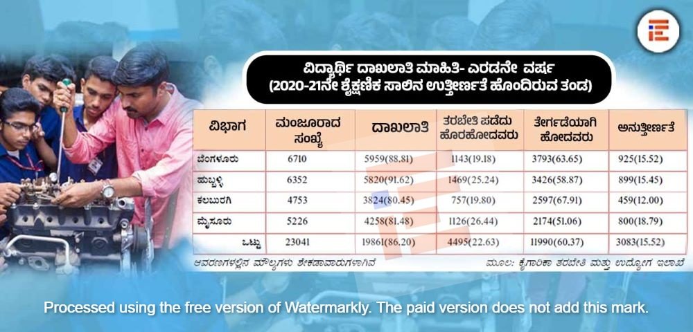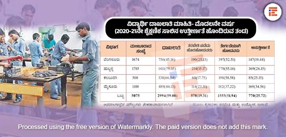 ಉದ್ಯಮ ವಲಯದ ಬೇಡಿಕೆಗೆ ಅನುಗುಣವಾಗಿ ಮಾನವ ಸಂಪನ್ಮೂಲ ಸಜ್ಜುಗೊಳಿಸಬೇಕಾದ ಐಟಿಐ ಕಾಲೇಜುಗಳಲ್ಲಿ ವೃತ್ತಿಪರ ತಾಂತ್ರಿಕ ಶಿಕ್ಷಣ ಮತ್ತು ತರಬೇತಿ (ಟಿವಿಇಟಿ) ಪಡೆದ ವಿದ್ಯಾರ್ಥಿಗಳ ಉತ್ತೀರ್ಣ ಪ್ರಮಾಣವು ರಾಜ್ಯದಲ್ಲಿ ಕಳಪೆಯಾಗಿದೆ. ಅನುತ್ತೀರ್ಣತೆಯು ಶೇಕಡಾ 40ರಷ್ಟಿದೆ. ಇದೇ ವೇಳೆ, ಐಟಿಐ ಕಾಲೇಜುಗಳ ಬಲವರ್ಧನೆಯ ದಿಸೆಯಲ್ಲಿ ತುರ್ತು ಗಮನಹರಿಸಬೇಕಾದ ಇನ್ನಿತರ ಸಮಸ್ಯೆಗಳೂ ಇವೆ ಎಂಬುದು “ಟಿ.ವಿ.ಇ.ಟಿ. ಉದ್ಯೋಗದ ಮೇಲೆ ಬೀರಿದ ಪರಿಣಾಮಗಳ ಕುರಿತ ಟ್ರೇಸರ್ ಅಧ್ಯಯನ”ದಿಂದ ಕಂಡುಬಂದಿದೆ.