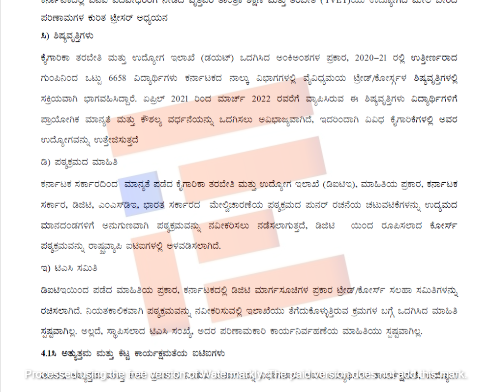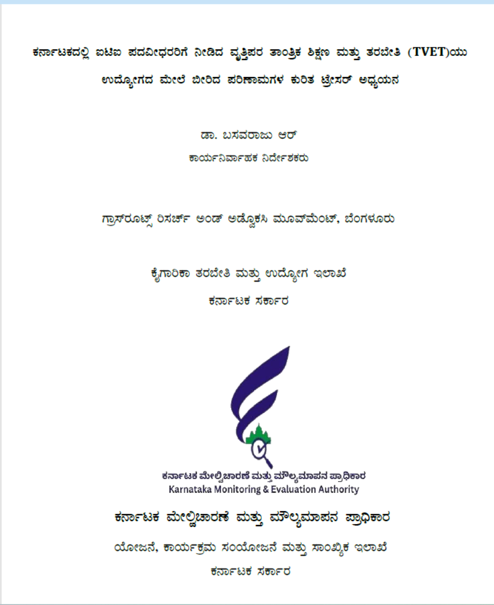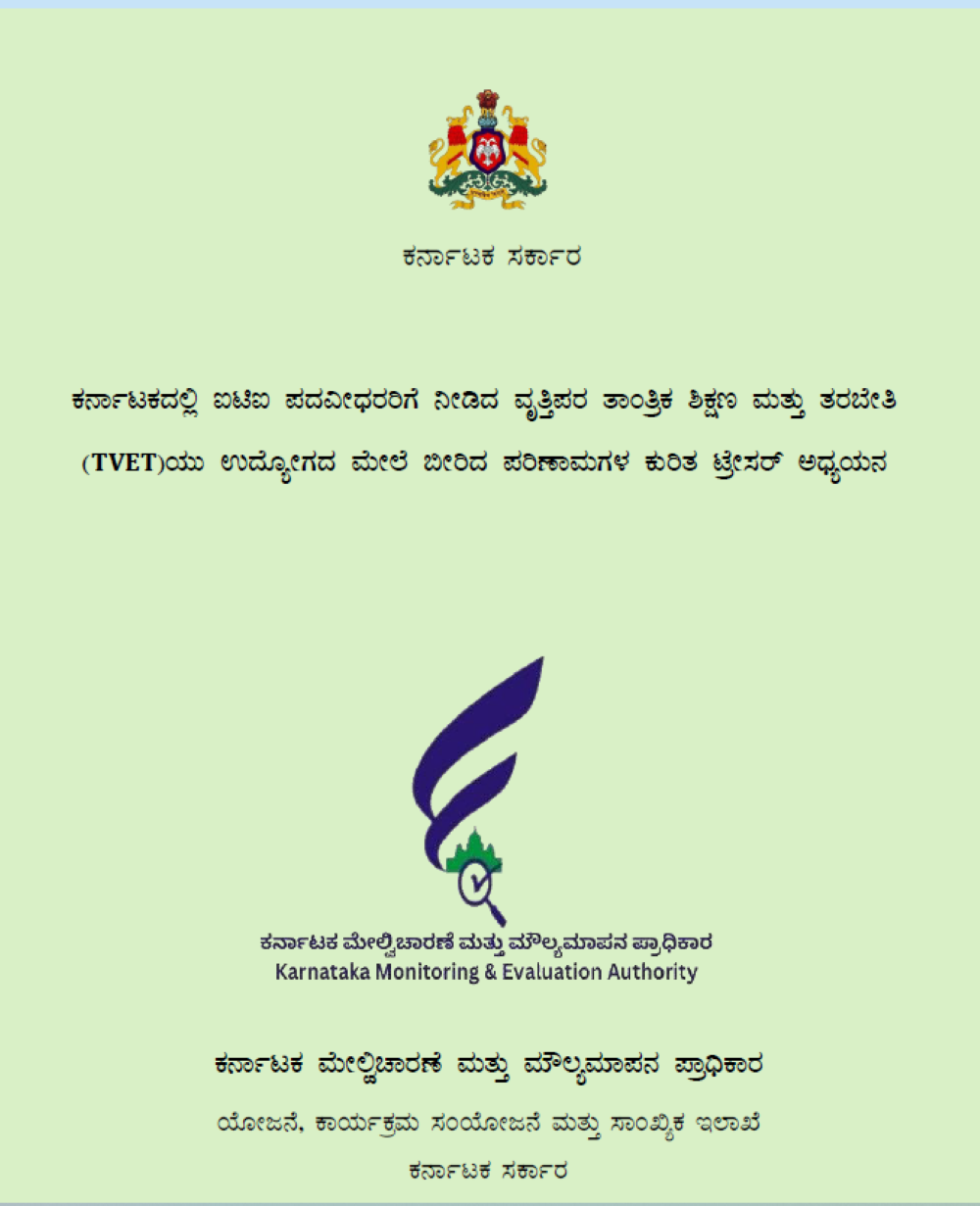 ಕರ್ನಾಟಕದಲ್ಲಿ ಐಟಿಐ ಪದವೀಧರರಿಗೆ ನೀಡಿದ ವೃತ್ತಿಪರ ತಾಂತ್ರಿಕ ಶಿಕ್ಷಣ ಮತ್ತು ತರಬೇತಿಯು ಉದ್ಯೋಗದ ಮೇಲೆ ಬೀರಿದ ಪರಿಣಾಮಗಳ ಕುರಿತಾದ ಟ್ರೇಸರ್ ಅಧ್ಯಯನ ವರದಿಯನ್ನು ಮೌಲ್ಯಮಾಪನ ಪ್ರಾಧಿಕಾರವು 2025ರ ಜುಲೈನಲ್ಲಿ ವರದಿ ಸಲ್ಲಿಸಿದೆ. ಈ ವರದಿ ಕುರಿತು ಕೌಶಲ್ಯಾಭಿವೃದ್ಧಿ ಸಚಿವ ಡಾ ಶರಣ ಪ್ರಕಾಶ್ ಪಾಟೀಲ್ ಅವರೊಂದಿಗೆ ಅಧಿಕಾರಿಗಳು ಚರ್ಚಿಸಿದ್ದಾರೆ ಎಂದು ತಿಳಿದು ಬಂದಿದೆ.
