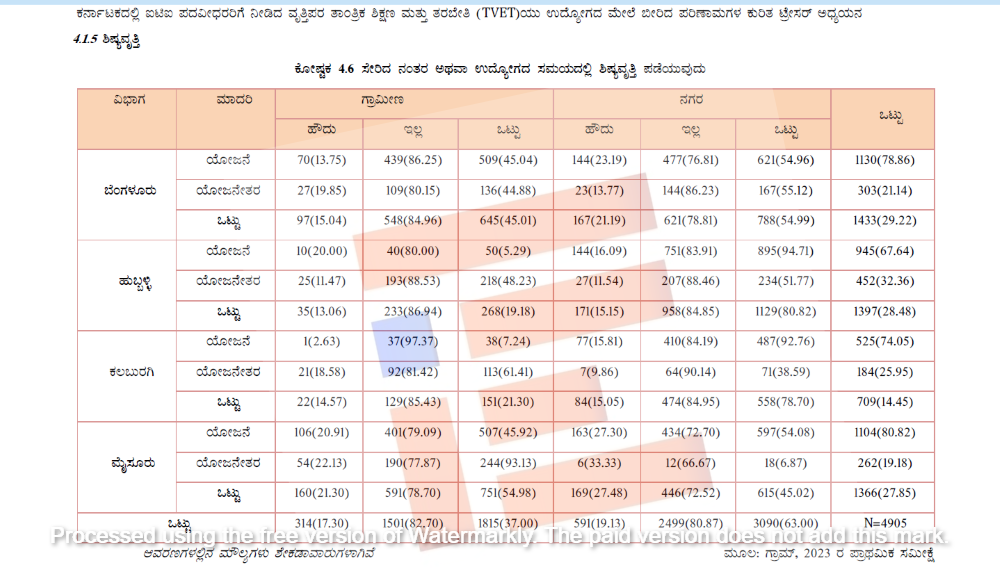 ಉದ್ಯೋಗರಹಿತರಲ್ಲಿ ಉಡುಪು ತಯಾರಿಕೆ, ಸಿವಿಲ್ ಡ್ರ್ಯಾಫ್ಟ್ಸ್ ಮ್ಯಾನ್ ಹಾಗೂ ಮರಗೆಲಸದ ಕೋರ್ಸ್ ಗಳ ತರಬೇತಿ ಪಡೆದವರು ಹೆಚ್ಚಿನ ಸಂಖ್ಯೆಯಲ್ಲಿದ್ದಾರೆ. ವಿದ್ಯಾರ್ಥಿಗಳಿಗೆ ಐಟಿಐ ವ್ಯಾಸಂಗವು ಉದ್ಯೋಗ ಪಡೆಯಲು ಸಹಾಯಕವಾಗಿದ್ದರೂ, ಅಧ್ಯಯನ ನಡೆಸಿದ ಕ್ಷೇತ್ರದಲ್ಲಿ ಉದ್ಯೋಗ ಲಭ್ಯತೆ ಕಷ್ಟಕರವೆಂಬ ಬಗ್ಗೆ ಅಧ್ಯಯನವು ಬೆರಳು ಮಾಡುತ್ತದೆ.