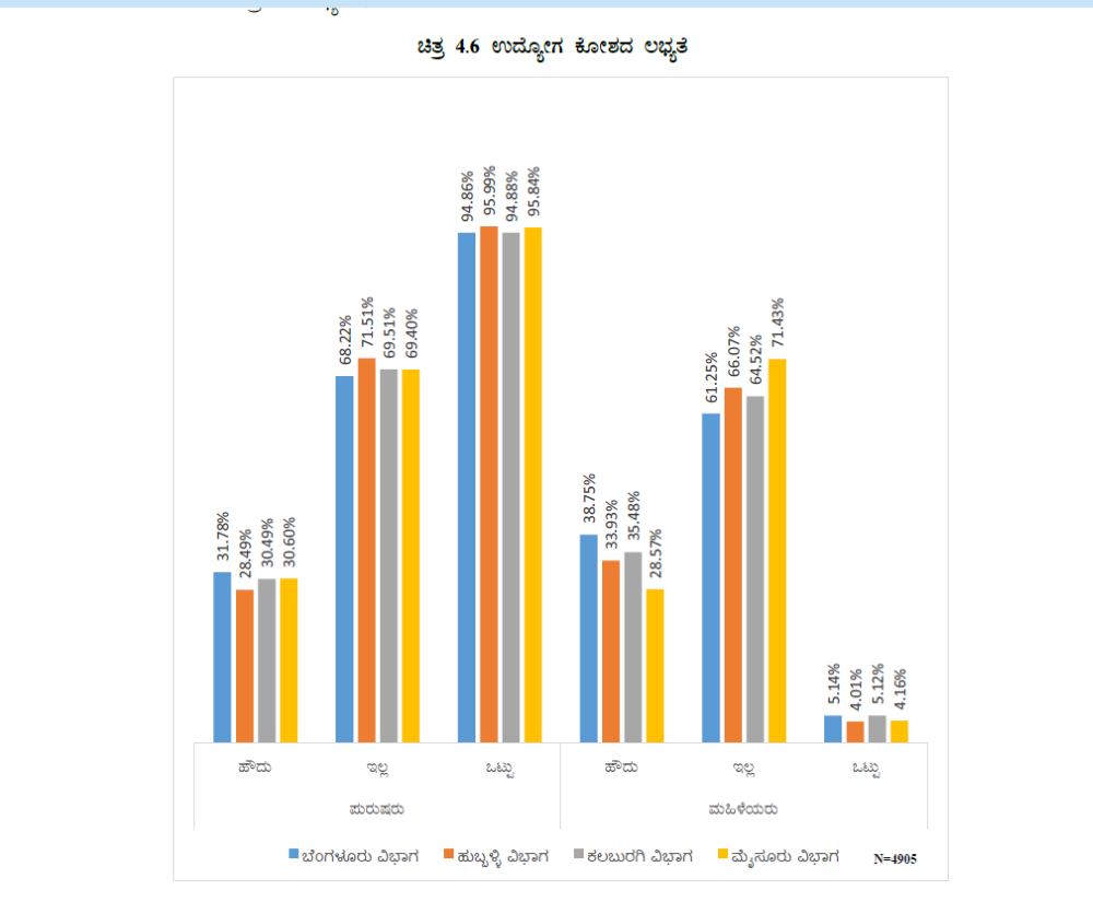 ಬೆಂಗಳೂರು, ಮೈಸೂರು ವಿಭಾಗಗಳಿಗೆ ಹೋಲಿಸಿದರೆ ಹುಬ್ಬಳ್ಳಿ, ಕಲಬುರಗಿ ವಿಭಾಗಗಳಲ್ಲಿ ಉದ್ಯೋಗ ಕೋಶಗಳ ಸಂಖ್ಯೆ ಕಡಿಮೆ ಇದೆ. ಸ್ವಉದ್ಯೋಗ ಮಾರ್ಗದರ್ಶನ ನೀಡುವಲ್ಲಿಯೂ ಇವುಗಳಿಂದ ಹೆಚ್ಚಿನ ಪ್ರಯೋಜನವಾಗಿಲ್ಲ ಎಂಬುದು 2020-21ನೇ ಸಾಲಿನಲ್ಲಿ ಪ್ರವೇಶ ಪಡೆದ ಅಭ್ಯರ್ಥಿಗಳ ಪ್ರತಿಕ್ರಿಯೆಗಳಿಂದ ತಿಳಿದುಬಂದಿದೆ.