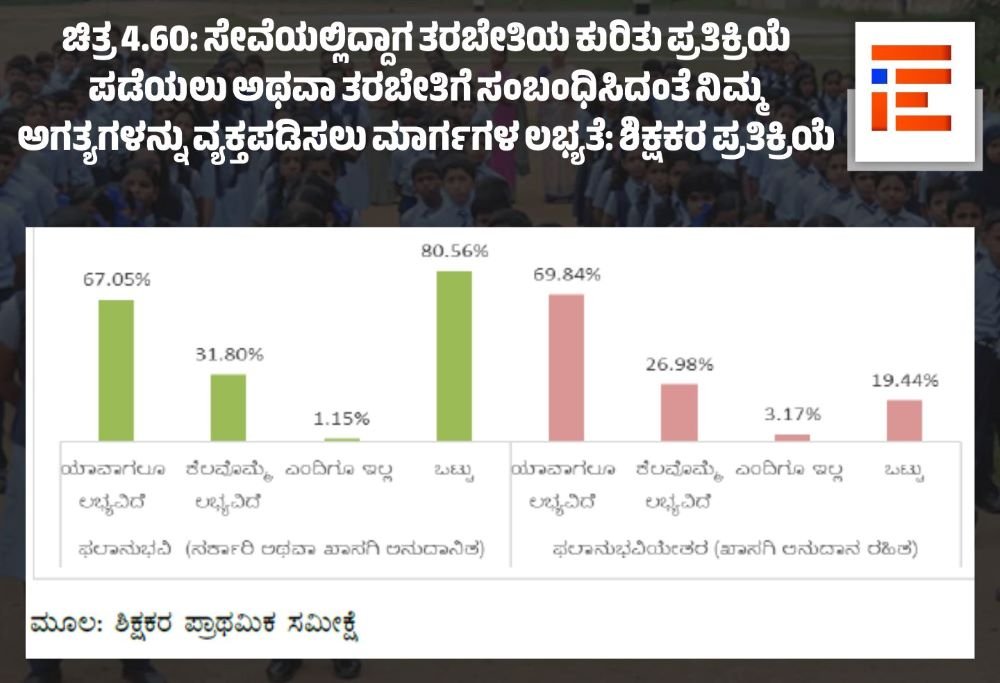 ಸರ್ಕಾರಿ ಮತ್ತು ಸರ್ಕಾರಿ ಅನುದಾನಿತ ಶಾಲೆಗಳ ಶಿಕ್ಷಕರು ಹೆಚ್ಚು ತರಬೇತಿ ಪಡೆದರೂ ಖಾಸಗಿ ಶಾಲೆಗಳ ವಿದ್ಯಾರ್ಥಿಗಳ ಕಲಿಕೆಯ ಫಲಿತಾಂಶ ಉತ್ತಮವಾಗಿರುವುದನ್ನು ಇದಕ್ಕೆ ನಿದರ್ಶನವನ್ನಾಗಿ ನೀಡಲಾಗಿದೆ. ಅನೇಕ ತರಬೇತಿಗಳು, ಆಡಳಿತಾತ್ಮಕ ಕರ್ತವ್ಯಗಳ ಒತ್ತಡದಿಂದ ಬೋಧನೆಗೆ ಗಮನಹರಿಸಲು ಶಿಕ್ಷಕರಿಗೆ ಕಷ್ಟವಾಗುತ್ತಿರುವುದು ಮತ್ತು ಶೈಕ್ಷಣಿಕ ವರ್ಷದಲ್ಲಿ ತರಬೇತಿ ನಡೆಸುವುದರಿಂದ ಶೈಕ್ಷಣಿಕ ಅವಧಿ ಕಡಿತಗೊಳ್ಳುವುದು “ತರಬೇತಿ ಫಲಿತಾಂಶʼ ಹಿನ್ನಡೆಗೆ ಕಾರಣ ಎನ್ನುವ ಅಭಿಪ್ರಾಯವನ್ನು ವರದಿ ದಾಖಲಿಸಿದೆ.