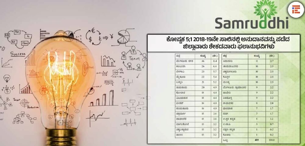 ಚಿತ್ರದುರ್ಗದಲ್ಲಿ ಶೇ. 3.8, ದಾವಣಗೆರೆಯಲ್ಲಿ ಶೇ. 3.8, ಬಾಗಲಕೋಟೆಯಲ್ಲಿ ಶೇ. 3.2, ಚಿಕ್ಕಬಳ್ಳಾಪುರದಲ್ಲಿ ಶೇ. 3.2, ಹಾಸನದಲ್ಲಿ ಶೇ. 3.2, ಯಾದಗಿರಿಯಲ್ಲಿ ಶೇ. 2.7, ಚಾಮರಾಜನಗರದಲ್ಲಿ ಶೇ. 2.5, ಚಿಕ್ಕಮಗಳೂರು ಶೇ. 2.5, ಕೊಪ್ಪಳದಲ್ಲಿ ಶೇ. 2.5, ಮಂಡ್ಯದಲ್ಲಿ ಶೇ. 2.5, ಬೆಂಗಳೂರು ಗ್ರಾಮಾಂತರದಲ್ಲಿ ಶೇ. 2.2, ಹಾವೇರಿಯಲ್ಲಿ ಶೇ. 2.2, ಶಿವಮೊಗ್ಗದಲ್ಲಿ ಶೇ. 2.2, ರಾಮನಗರದಲ್ಲಿ ಶೇ. 2.0, ಧಾರವಾಡದಲ್ಲಿ ಶೇ. 1.7, ಗದಗ್ನಲ್ಲಿ ಶೇ. 1.7, ಉತ್ತರ ಕನ್ನಡದಲ್ಲಿ ಶೇ. 1.2, ಉಡುಪಿಯಲ್ಲಿ ಶೇ. 0.7, ದಕ್ಷಿಣ ಕನ್ನಡದಲ್ಲಿ ಶೇ. 0.2, ಕೊಡಗಿನಲ್ಲಿ ಶೇ. 0.2 ಫಲಾನುಭವಿಗಳು ಇದರ ಅನುಕೂಲ ಪಡೆದಿರುವುದು ತಿಳಿದು ಬಂದಿದೆ.
