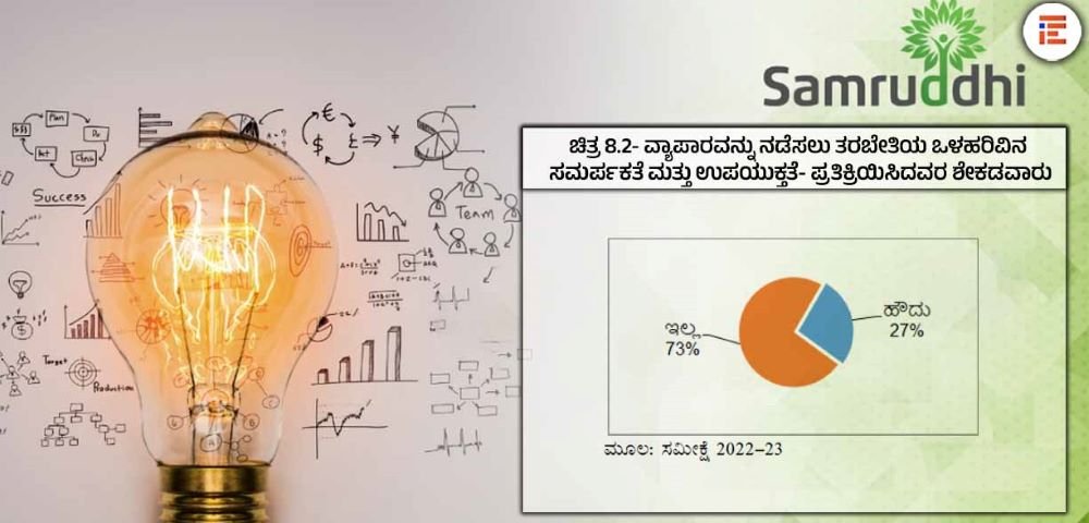 ವಿವರವಾದ ತರಬೇತಿಯನ್ನು ಪಡೆಯುವಲ್ಲಿ ಮಹಿಳೆಯರು, ಪುರುಷರಿಗಿಂತ ಸ್ವಲ್ಪ ಕಡಿಮೆ ಶೇಕಡವಾರು ಪಡೆದಿದ್ದಾರೆ. ಯಶಸ್ವಿಯಾಗಿ ವ್ಯಾಪಾರ ನಡೆಸಲು ನೀಡಿರುವ ತರಬೇತಿಯು ಸಮರ್ಪಕವಾಗಿಲ್ಲ ಎಂದು ಶೇ. 40ರಷ್ಟು ಫಲಾನುಭವಿಗಳು ಮೌಲ್ಯಮಾಪನ ತಂಡಕ್ಕೆ ಅಭಿಪ್ರಾಯಿಸಿದ್ದಾರೆ.