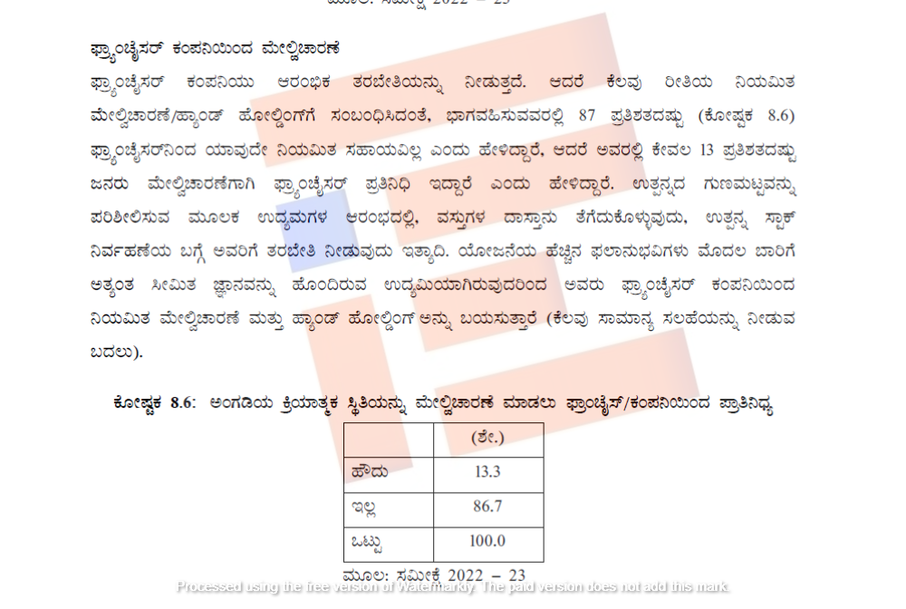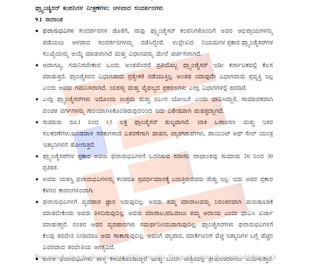 ಬಹುತೇಕ ಫಲಾನುಭವಿಗಳಿಗೆ ವ್ಯವಹಾರ ಜ್ಞಾನ ಇಲ್ಲ. ತಮ್ಮ ಮಾರಾಟವನ್ನು ನಿರಂತರವಾಗಿ ಮರು ಹೂಡಿಕೆ ಮಾಡಬೇಕು ಎಂದು ತಿಳಿದಿರುವುದಿಲ್ಲ. ಮಾರಾಟ, ವಹಿವಾಟು ತಮ್ಮ ಆದಾಯ ಎಂದು ಭಾವಿಸಿ ಖರ್ಚು ಮಾಡುತ್ತಿದ್ದಾರೆ. ನಂತರ ಅವರ ವ್ಯವಹಾರಗಳು ಸಮರ್ಥನೀಯವಾಗುವುದಿಲ್ಲ. ಪ್ರಾಂಚೈಸರ್ಗಳು ಫಲಾನುಭವಿಗಳಿಗೆ ಕೆಲವು ತರಬೇತಿ ನೀಡಿದರೂ ಸಹ ಅದು ಸಾಕಾಗುತ್ತಿಲ್ಲ. ಫಲಾನುಭವಿಗಳಿಗೆ ವ್ಯಾಪಾರ , ಮಾರ್ಕೇಟಿಂಗ್ ವೆಚ್ಚ ಇತ್ಯಾದಿಗಳ ಬಗ್ಗೆ ಹೆಚ್ಚಿನ ವಿವರವಾದ ತರಬೇತಿ ಅಗತ್ಯವಿದೆ. ಅಲ್ಲದೇ ಫಲಾನುಭವಿಗಳಿಗೆ ವ್ಯವಹಾರದ ಬಗ್ಗೆ ಗಂಭೀರತೆಯ ಕೊರತೆಯಿದೆ ಎಂದು ವರದಿಯಲ್ಲಿ ವಿಶ್ಲೇಷಿಸಿರುವುದು ಗೊತ್ತಾಗಿದೆ.