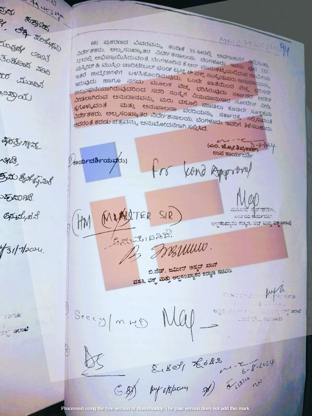 ಇದಕ್ಕೆ ಸಚಿವ ಬಿ ಝಡ್ ಜಮೀರ್ ಅಹ್ಮದ್ ಖಾನ್ ಅವರೂ ಸಹ ಅನುಮೋದಿಸಿರುವುದು ಟಿಪ್ಪಣಿ ಹಾಳೆಯಿಂದ ತಿಳಿದು ಬಂದಿದೆ.