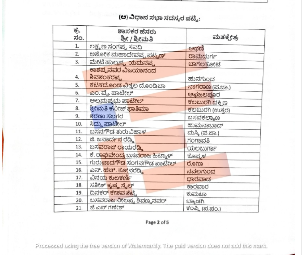 ವಿಧಾನಸಭೆ ಸದಸ್ಯರ ಪಟ್ಟಿ