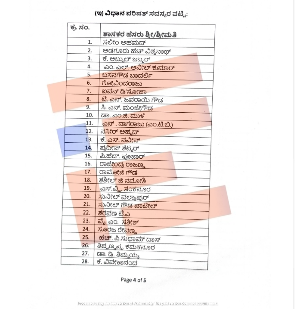 ವಿಧಾನ ಪರಿಷತ್ ಸದಸ್ಯರ ಪಟ್ಟಿ