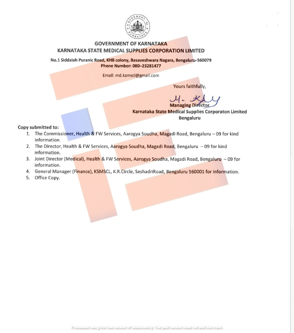 ಈ ಕುರಿತು ವಕೀಲ ಪ್ರಶಾಂತ್ ಮೆಥಾಲ್ ಎಂಬುವರು ಸಚಿವ ದಿನೇಶ್ ಗುಂಡೂರಾವ್ ಅವರಿಗೆ 2024ರ ಜುಲೈ 17ರಂದು ದೂರು ಸಲ್ಲಿಸಿದ್ದರು. ಈ ದೂರನ್ನಾಧರಿಸಿ ಕ್ರಮ ಕೈಗೊಳ್ಳಬೇಕು ಎಂದು ಸಚಿವ ದಿನೇಶ್ ಗುಂಡೂರಾವ್ ಅವರು ಅಧಿಕಾರಿಗಳಿಗೆ 2024ರ ಜುಲೈ 24ರಂದು ನಿರ್ದೇಶಿಸಿದ್ದರು. ಈ ನಿರ್ದೇಶನದಂತೆ ಆರೋಗ್ಯ ಮತ್ತು ಕುಟುಂಬ ಕಲ್ಯಾಣ ಇಲಾಖೆಯ ಸರ್ಕಾರದ ಪ್ರಧಾನ ಕಾರ್ಯದರ್ಶಿಯು ಆಯುಕ್ತರಿಗೆ 2024ರ ಆಗಸ್ಟ್ 12ರಂದು ಪತ್ರವೊಂದನ್ನು ಬರೆದಿದ್ದರು. ಆದರೆ ಈ ಬಗ್ಗೆ ಕೈಗೊಂಡ ಕ್ರಮಗಳೇನು ಎಂಬ ಬಗ್ಗೆ ಸಾರ್ವಜನಿಕವಾಗಿ ಮಾಹಿತಿ ಇಲ್ಲ.