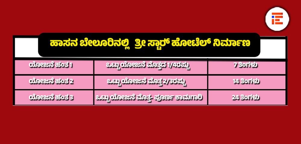 ಬೇಲೂರಿನಲ್ಲಿ 13.87 ಕೋಟಿ ರು ವೆಚ್ಚದಲ್ಲಿ 3 ತ್ರಿ ಸ್ಟಾರ್‍‌ ಹೋಟೆಲ್‌ ನಿರ್ಮಾಣ ಮಾಡಲು ರೈಟ್ಸ್‌ ಸಂಸ್ಥೆಯು ಟೆಂಡರ್ ಆಹ್ವಾನಿಸಿತ್ತು.