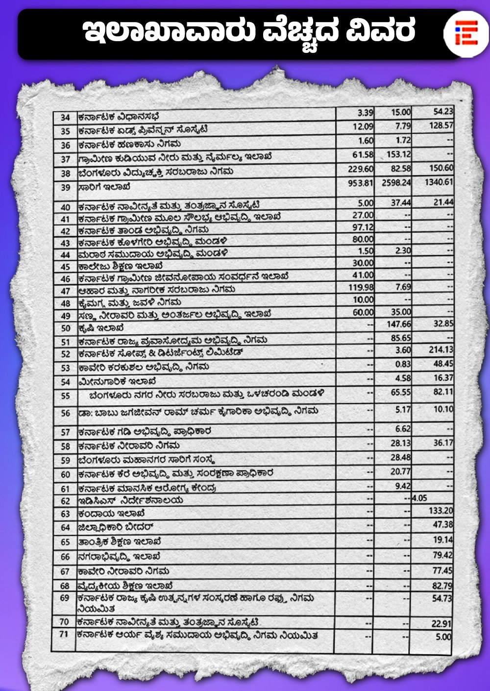 ಯಾವ ಇಲಾಖೆಯಿಂದ ಎಷ್ಟು ಖರ್ಚು?