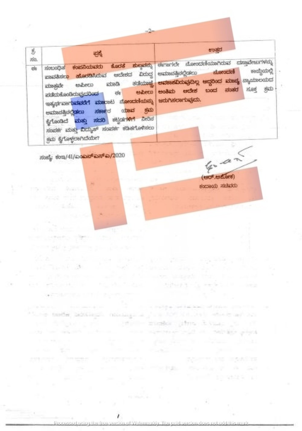 ಸಂಬಂಧಪಟ್ಟ ಅಧಿಕಾರಿಗಳಿಗೆ ಕರ್ನಾಟಕ ನೋಂದಣಿ ನಿಯಮಗಳು 1965ರ ನಿಯಮ 170 ಅಡಿ 2018ರ ಡಿಸೆಂಬರ್ 7ರಂದು ಕಾರಣ ಕೇಳುವ ನೋಟೀಸ್ ಜಾರಿ ಮಾಡಿತ್ತು. ಅವರಿಂದಲೇ ಏಕೆ ವಸೂಲಾಯಿಸಬಾರದು ಎಂಬುದಕ್ಕೆ ಸಕಾರಣ ನೀಡಲು ಸೂಚಿಸಿತ್ತು ಎಂದು ಉತ್ತರದಲ್ಲಿ ತಿಳಿಸಿದ್ದರು.