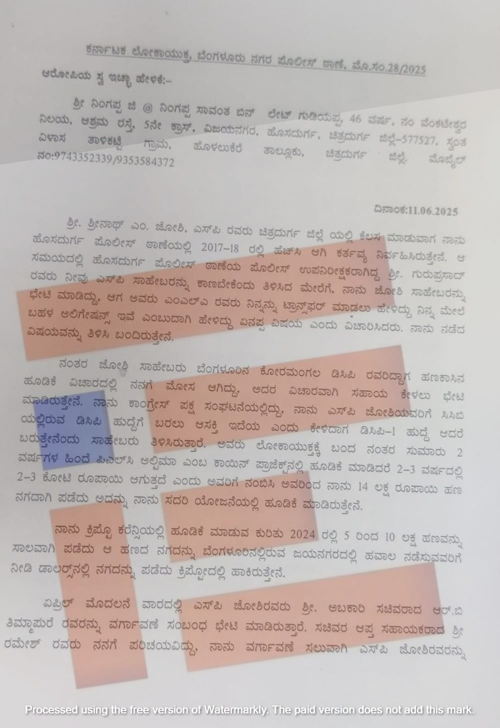 ಲೋಕಾಯುಕ್ತ ಹೆಸರು ಹೇಳಿ ಹಣ ವಸೂಲಿ ಮಾಡುತ್ತಿದ್ದ ಎಂಬ ಆರೋಪದ ಮೇರೆಗೆ ಬಂಧಿತನಾಗಿದ್ದ ಆರೋಪಿ ನಿಂಗಪ್ಪನ ಪ್ರಕರಣವು ಅಧಿಕಾರಿಗಳ ವರ್ಗದಲ್ಲಿ ಭಾರೀ ಸಂಚಲನ ಮೂಡಿಸಿತ್ತು. ಇದೇ ಪ್ರಕರಣದಲ್ಲಿ  ಅಬಕಾರಿ ಸಚಿವ ಆರ್‍‌ ಬಿ ತಿಮ್ಮಾಪುರ ಅವರ ಹೆಸರು ತಳಕು ಹಾಕಿಕೊಂಡಿತ್ತು. ಈ ಕುರಿತು ದಿ ಫೈಲ್‌ 2025ರ ಜೂನ್‌ 19ರಂದು ದಾಖಲೆ ಸಹಿತ ವರದಿ ಪ್ರಕಟಿಸಿತ್ತು.