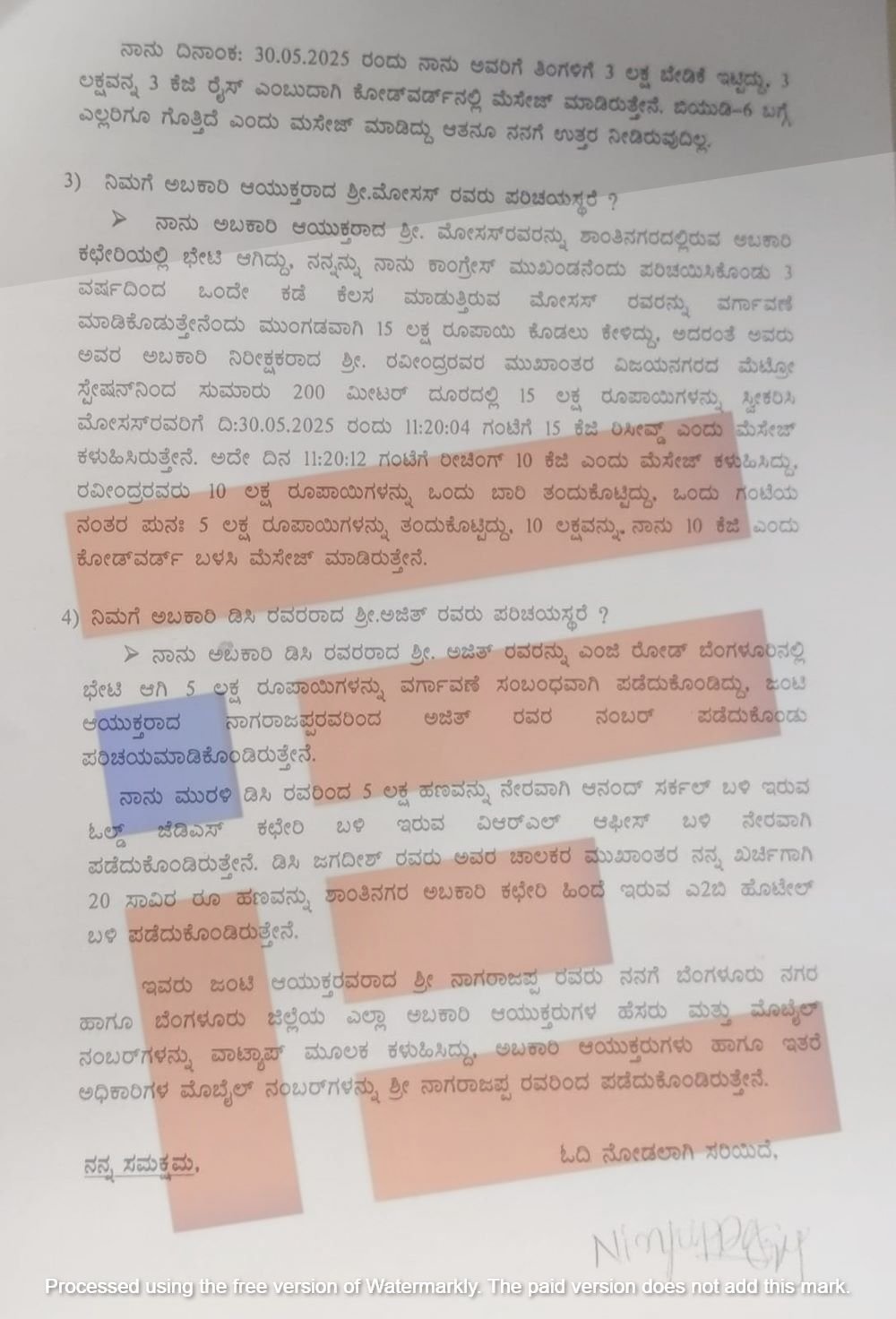 ಲೋಕಾಯುಕ್ತ ಹೆಸರು ಹೇಳಿ ಸರ್ಕಾರಿ ಅಧಿಕಾರಿಗಳಿಂದ ಕೋಟ್ಯಂತರ ರುಪಾಯಿ ವಸೂಲು ಮಾಡಿರುವ ಪ್ರಕರಣಕ್ಕೆ ಸಂಬಂಧಿಸಿದಂತೆ ಬಂಧಿತ  ಆರೋಪಿ ನಿಂಗಪ್ಪ ಅಬಕಾರಿ ಇಲಾಖೆಯ ವಿವಿಧ ಅಧಿಕಾರಿಗಳಿಂದ ಕಳೆದ 6 ತಿಂಗಳಿನಿಂದಲೂ  ಹಣವನ್ನು ವಸೂಲಿ ಮಾಡಿರುವುದಾಗಿ ಒಪ್ಪಿಕೊಂಡಿದ್ದ ಎಂದು  ಲೋಕಾಯುಕ್ತ ಪೊಲೀಸ್‌ ವಿಭಾಗವು ಇದೀಗ ಅಧಿಕೃತವಾಗಿ ಪತ್ರಿಕಾ ಹೇಳಿಕೆಯನ್ನು ಬಿಡುಗಡೆ ಮಾಡಿತ್ತು.