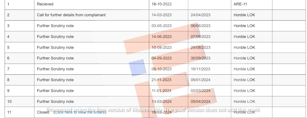 ಈ ದೂರನ್ನು ಮುಕ್ತಾಯಗೊಳಿಸಲು ಲೋಕಾಯುಕ್ತ ಹೆಚ್ಚುವರಿ ನಿಬಂಧಕರು ಸಲ್ಲಿಸಿದ್ದ ಅಂತಿಮ ಪರಿಶೀಲನಾ ಟಿಪ್ಪಣಿಯನ್ನು ಲೋಕಾಯುಕ್ತ ಬಿ ಎಸ್ ಪಾಟೀಲ್ ಅವರು ಅವಲೋಕಿಸಿದ್ದಾರೆ. ಆ ನಂತರ ಹೆಚ್ಚುವರಿ ನಿಬಂಧಕರ ಅಂತಿಮ ಪರಿಶೀಲನಾ ಟಿಪ್ಪಣಿಯನ್ನು ಅನುಮೋದಿಸಿರುವುದು ಆದೇಶದಿಂದ ಗೊತ್ತಾಗಿದೆ.