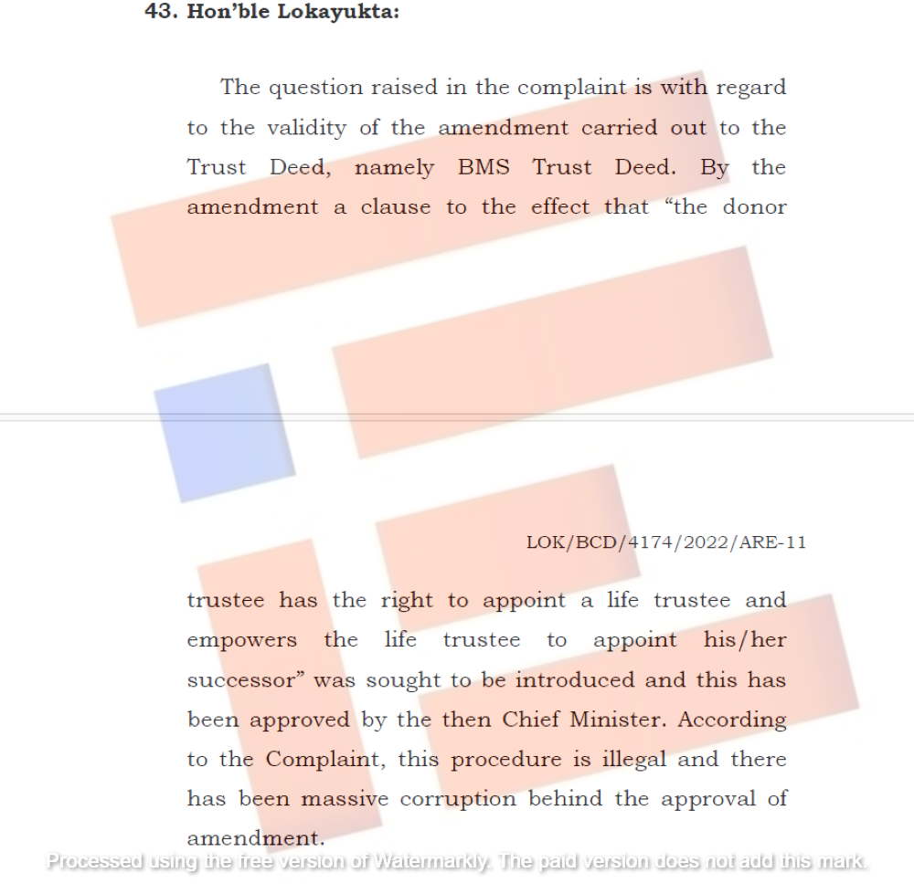 ಈ ಬೆಳವಣಿಗೆಗಳ ನಡುವೆಯೇ ಇದೇ ಟ್ರಸ್ಟ್ ಡೀಡ್ ತಿದ್ದುಪಡಿ ಹಿಂದೆ ಭಾರೀ ಪ್ರಮಾಣದ ಭ್ರಷ್ಟಾಚಾರ ನಡೆದಿದೆ ಎಂದು ಸಲ್ಲಿಸಿದ್ದ ದೂರನ್ನು ಲೋಕಾಯುಕ್ತ ಸಂಸ್ಥೆಯು ಮುಕ್ತಾಯಗೊಳಿಸಿರುವುದು ಮುನ್ನೆಲೆಗೆ ಬಂದಿದೆ.