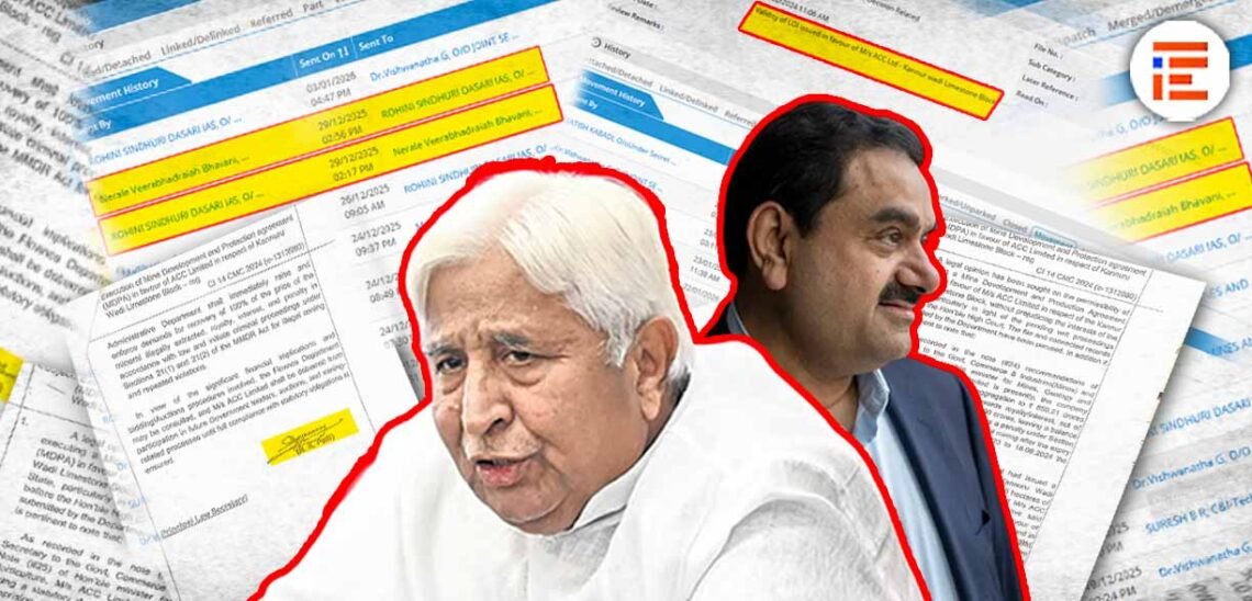 ಅದಾನಿ ಸಮೂಹದ ಎಸಿಸಿ ಸಿಮೆಂಟ್ಸ್ ಪ್ರೈವೈಟ್ ಲಿಮಿಟೆಡ್ಗೆ ಲೆಟರ್ ಆಫ್ ಇಂಟೆಂಟ್ನ್ನು ವಿಸ್ತರಿಸಲು ಕೈಗಾರಿಕೆ ಮತ್ತು ವಾಣಿಜ್ಯ ಇಲಾಖೆಯು (ಗಣಿ) ಕಾನೂನು ಇಲಾಖೆಯ ಅಭಿಪ್ರಾಯವನ್ನು ಕೋರಿತ್ತು. ಆದರೆ ಕೈಗಾರಿಕೆ ಮತ್ತು ವಾಣಿಜ್ಯ ಇಲಾಖೆಯು (ಗಣಿ) ಈ ಅಭಿಪ್ರಾಯಕ್ಕೂ ಕಾದಿರಲಿಲ್ಲ. ಬದಲಿಗೆ ಕಾನೂನು ಅಭಿಪ್ರಾಯ ತನ್ನ ಕೈ ಸೇರುವ ಮುನ್ನವೇ ಕೇಂದ್ರ ಸರ್ಕಾರಕ್ಕೆ ಪ್ರಸ್ತಾವ ಸಲ್ಲಿಸಿತ್ತು.