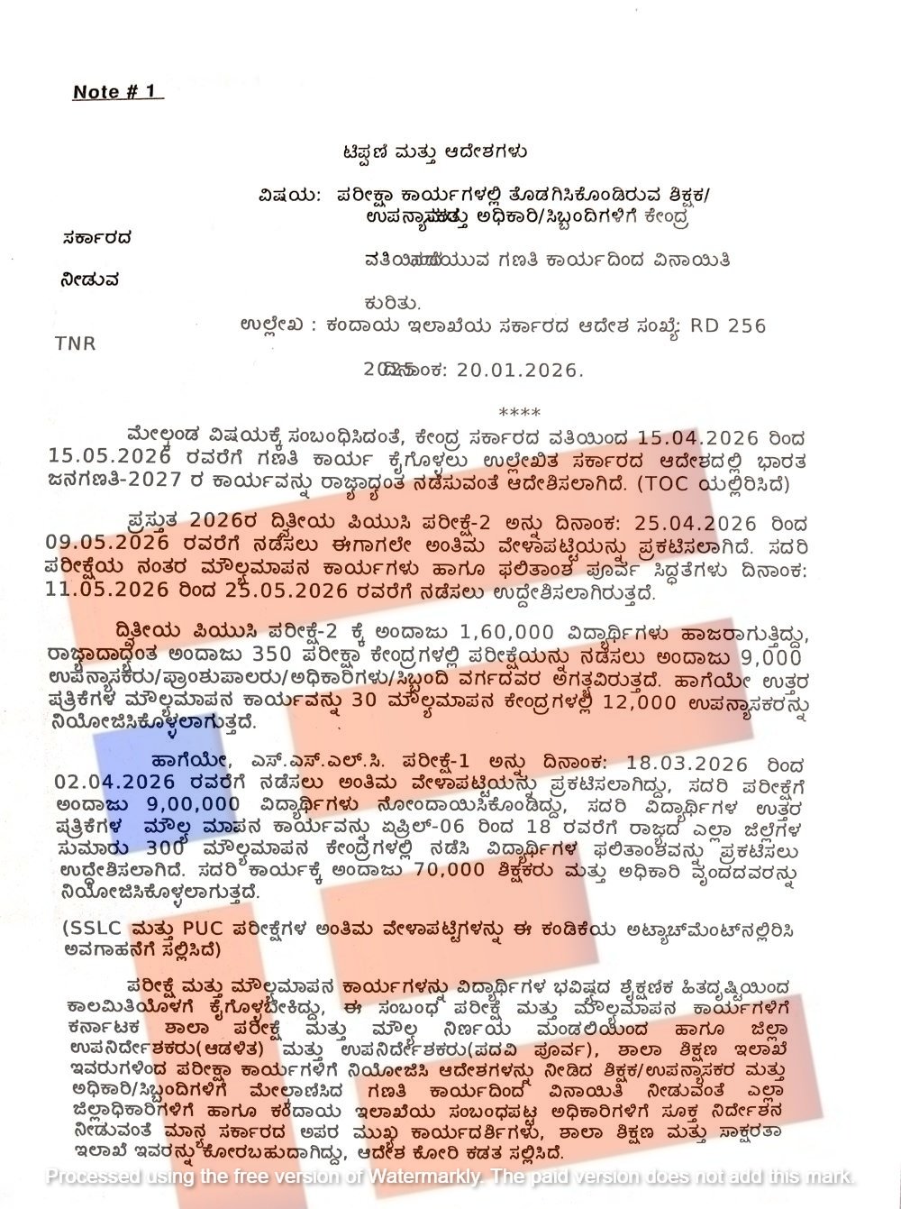 ಬೆಂಗಳೂರು; ಎಸ್‌ಎಸ್‌ಎಲ್‌ಸಿ ಮತ್ತು ಪಿಯುಸಿ ಪರೀಕ್ಷೆ ಮತ್ತು ಮೌಲ್ಯಮಾಪನ ಕಾರ್ಯಕ್ಕೆ ನಿಯೋಜನೆಯಾಗಿರುವ ಶಿಕ್ಷಕರು, ಉಪನ್ಯಾಸಕರನ್ನು ಜನಗಣತಿ ನಿಯೋಜಿಸಬಾರದು, ಗಣತಿದಾರರನ್ನಾಗಿ ನೇಮಕಕ್ಕೆ ವಿನಾಯಿತಿ ನೀಡಬೇಕು ಎಂದು ಶಾಲಾ ಶಿಕ್ಷಣ ಮತ್ತು ಸಾಕ್ಷರತೆ ಇಲಾಖೆಯು ಮುಖ್ಯ ಕಾರ್ಯದರ್ಶಿಗಳ ಮೊರೆ ಹೊಕ್ಕಿದೆ.