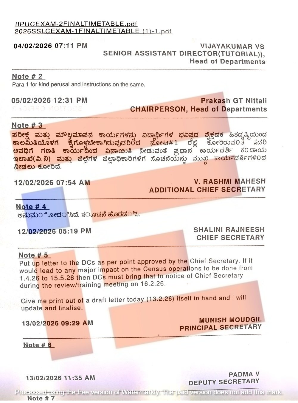 ಈ ಪ್ರಸ್ತಾವವನ್ನು ಮುಖ್ಯ ಕಾರ್ಯದರ್ಶಿ ಶಾಲಿನಿ ರಜನೀಶ್‌ ಅವರೂ ಸಹ ಅನುಮೋದಿಸಿದ್ದಾರೆ ಮತ್ತು ಈ ಸಂಬಂಧ ಅಧಿಸೂಚನೆ ಹೊರಡಿಸಲು ಸೂಚಿಸಿದ್ದಾರೆ ಎಂದು ತಿಳಿದು ಬಂದಿದೆ. ಈ ಸಂಬಂಧ ಟಿಪ್ಪಣಿ ಹಾಳೆಗಳು ‘ದಿ ಫೈಲ್‌’ಗೆ ಲಭ್ಯವಾಗಿವೆ.
